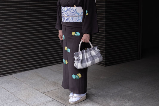 【600経紬のふわふわバッグ】モノトーン市松柄