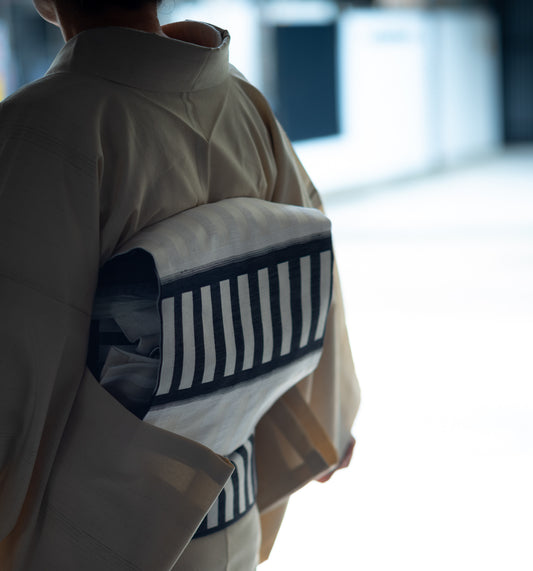 【作楽の九寸名古屋帯】モノリスストライプ|彩綾佐賀錦