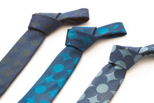 西陣織のネクタイ(御召)/南蛮七宝文様【空色×藍】