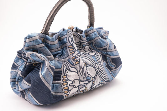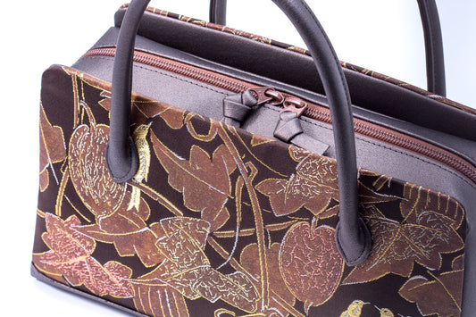 【引箔を使った帯地の利休バッグ 烏瓜/千寿錦引箔】ダックジュエル(茶系)