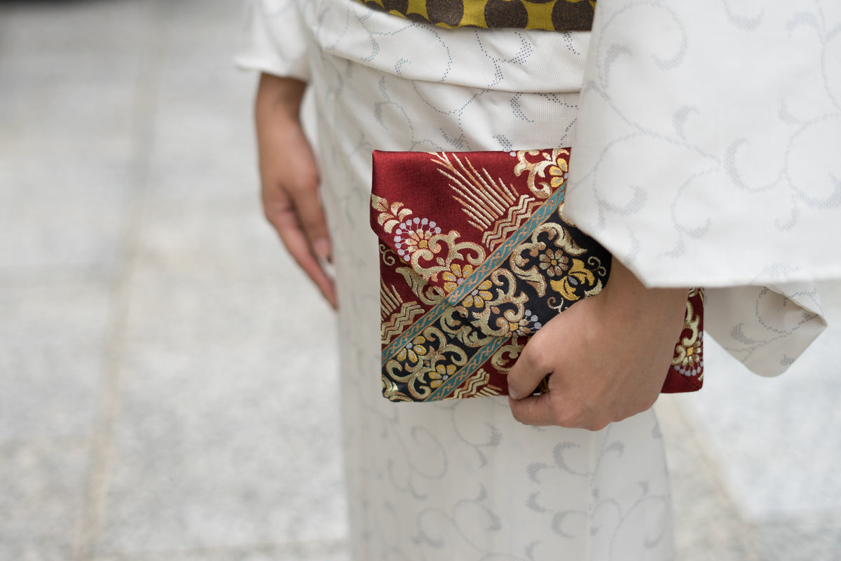 【紹巴織の数寄屋袋】シルクロード文様(臙脂色)