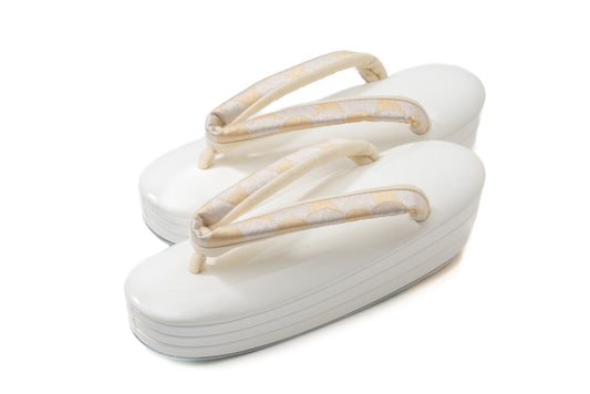 受注制作(S~Lサイズ)【礼装用/南蛮七宝のエナメル真綿入り三段草履(白銀金)/つぼ通し】