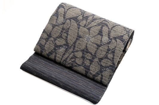 生産限定品【松皮染(九寸名古屋帯)モンステラ文様/上品綟+型染め】