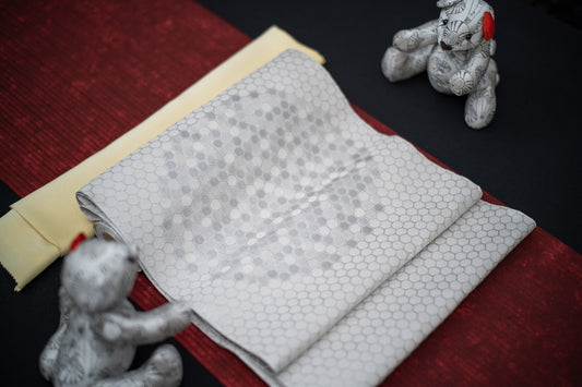 Online限定【作楽の九寸名古屋帯】お月さま/(タイル織・彩綾佐賀錦)白銀色