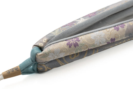 【麹塵染の花緒】雪輪に枝葉/紹巴織