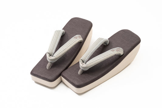 Online限定/挿上げ【オールシーズン 六角ぞうり】麹塵染葡萄色花緒(紹巴織)/コラボRocca草履/フリーサイズ