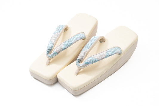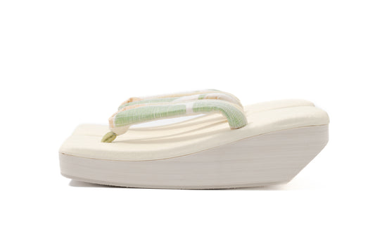 Online限定/挿上げ【オールシーズン 六角ぞうり】麹塵染白地花緒(紹巴織)/コラボRocca草履/フリーサイズ