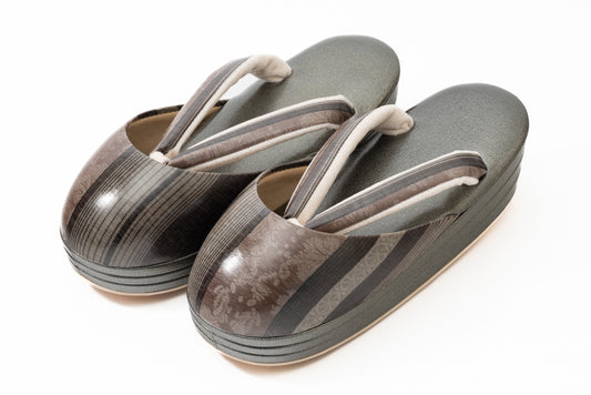 挿上げ【南蛮七宝の防寒雨草履】紹巴織/青茶×焦茶台(Fサイズ 22.5~25cm)