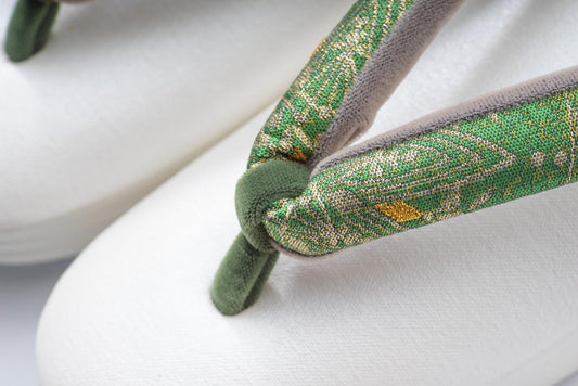挿上げ【紹巴織の真綿入り手縫いプレミアム三段草履M】グリーン華文/紹巴織