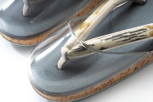 挿上げ【総紗縫の雨専用草履(Fサイズ)】霞柄・ダックジュエル(オパール)