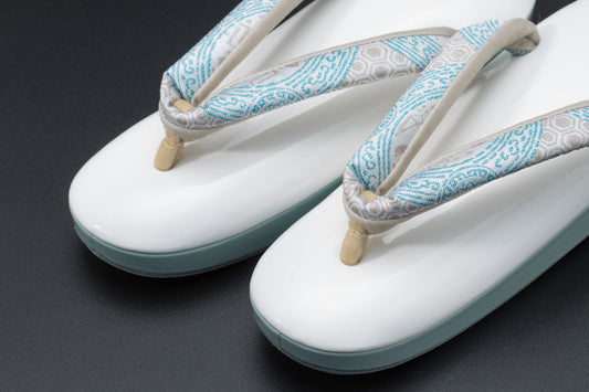 受注制作(S-LLサイズ)【南蛮七宝の真綿入り草履(白+グリーン)/四分ニ半(ダックジュエル)】