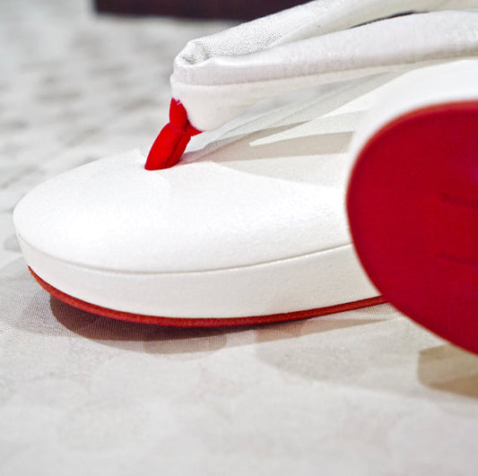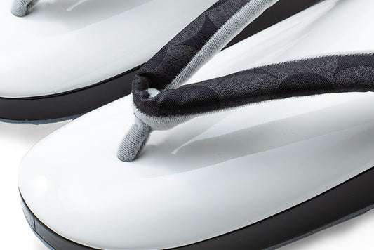受注制作(S-LLサイズ)【輪宝文のツートン真綿入り草履/つぼ通し/白色甕覗】