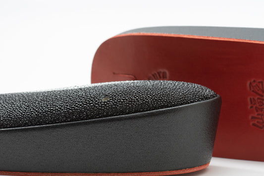 一段草履台【黒スティングレイ/オーダーメイド真綿入り草履+赤底仕様】プレミアム台