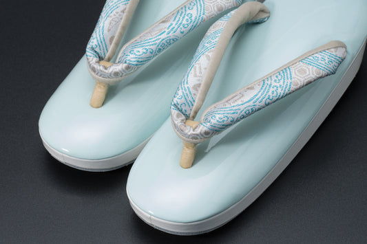挿上げ【麹塵染の真綿入り エナメル草履M(ツートン)】