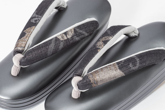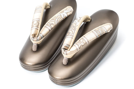 受注制作(S~Lサイズ)【礼装用/角花柄のエナメル真綿入り三段草履/つぼ通し花緒】