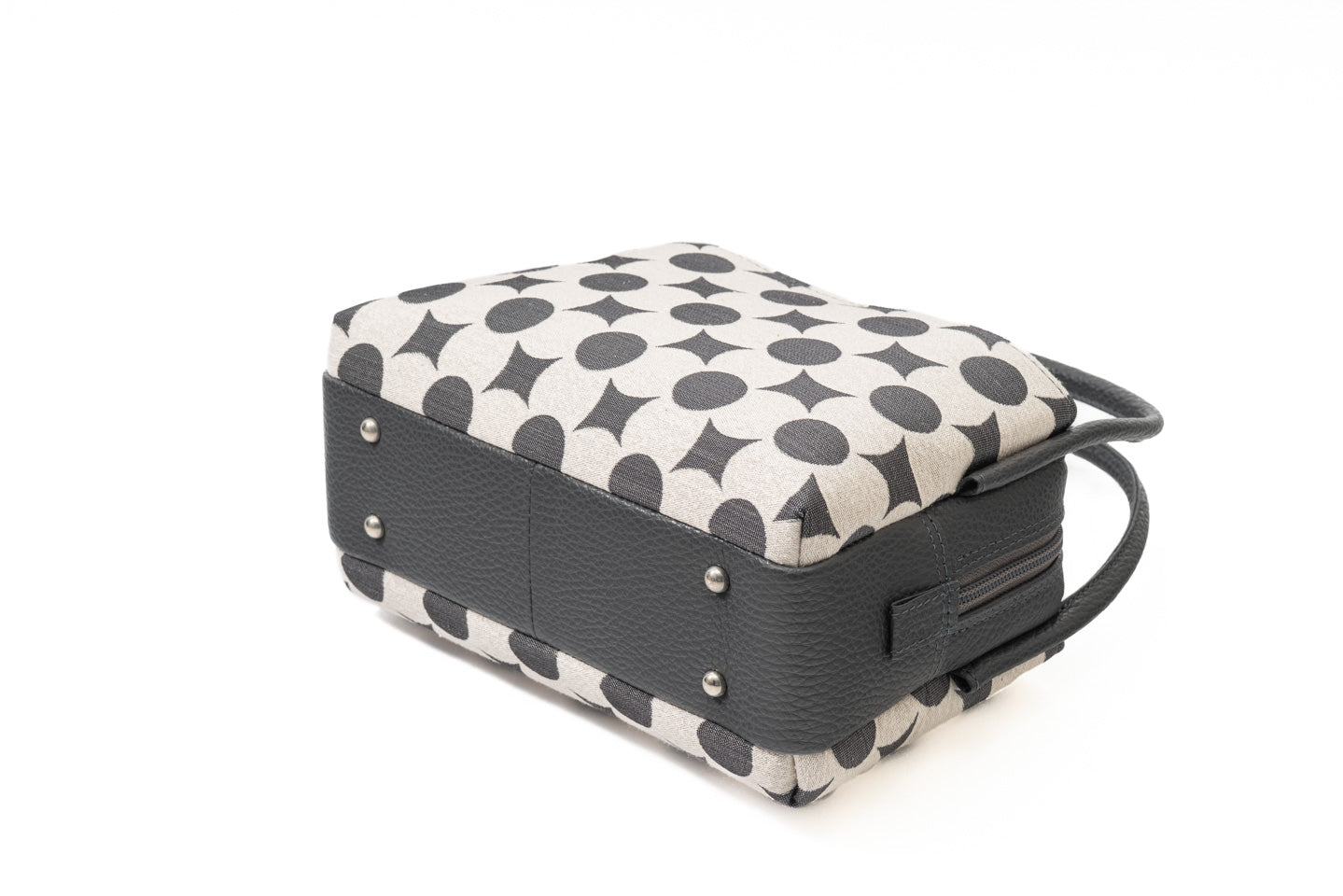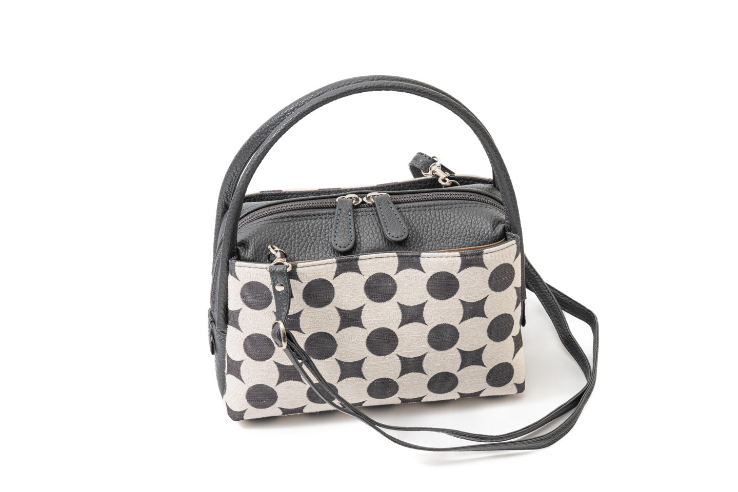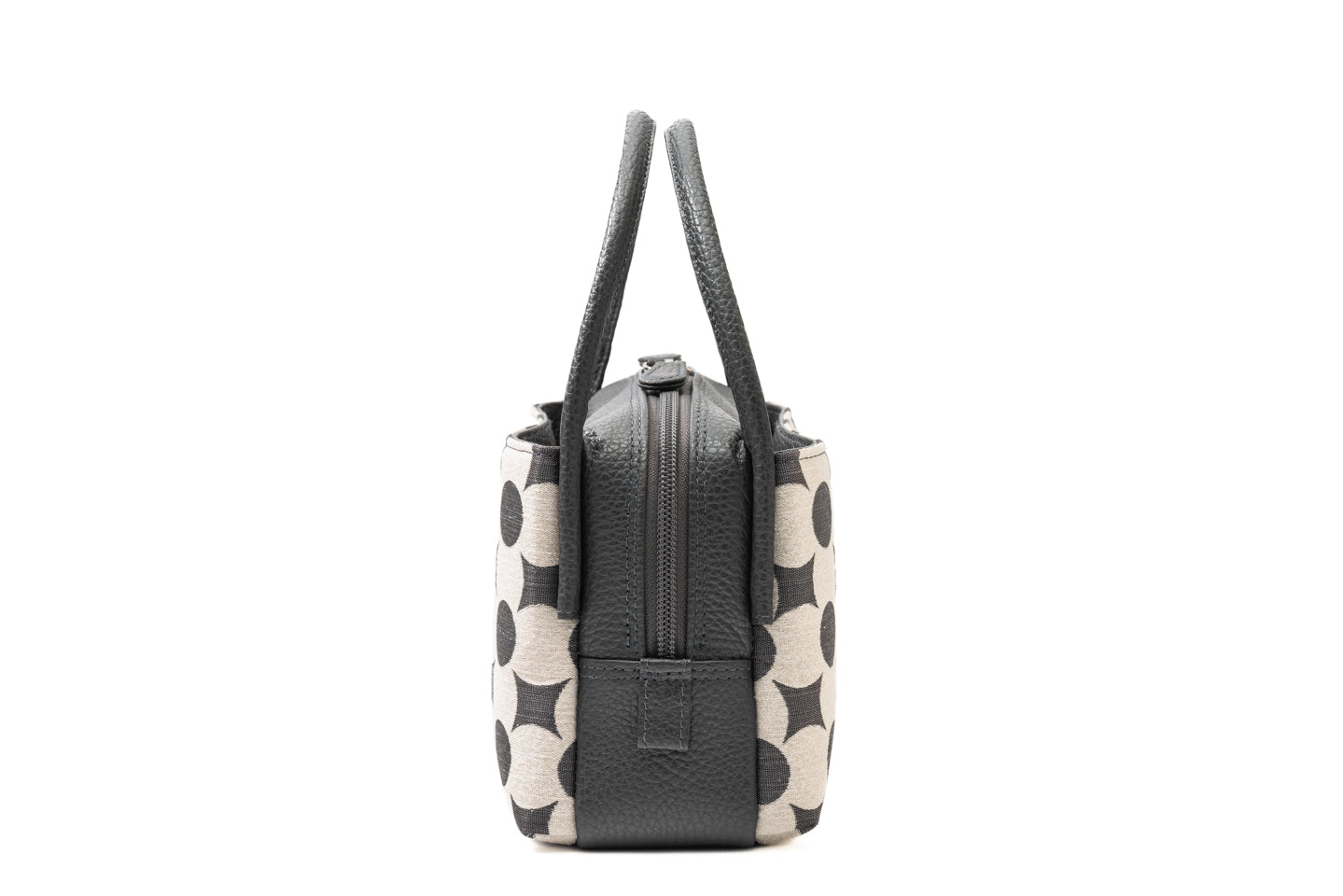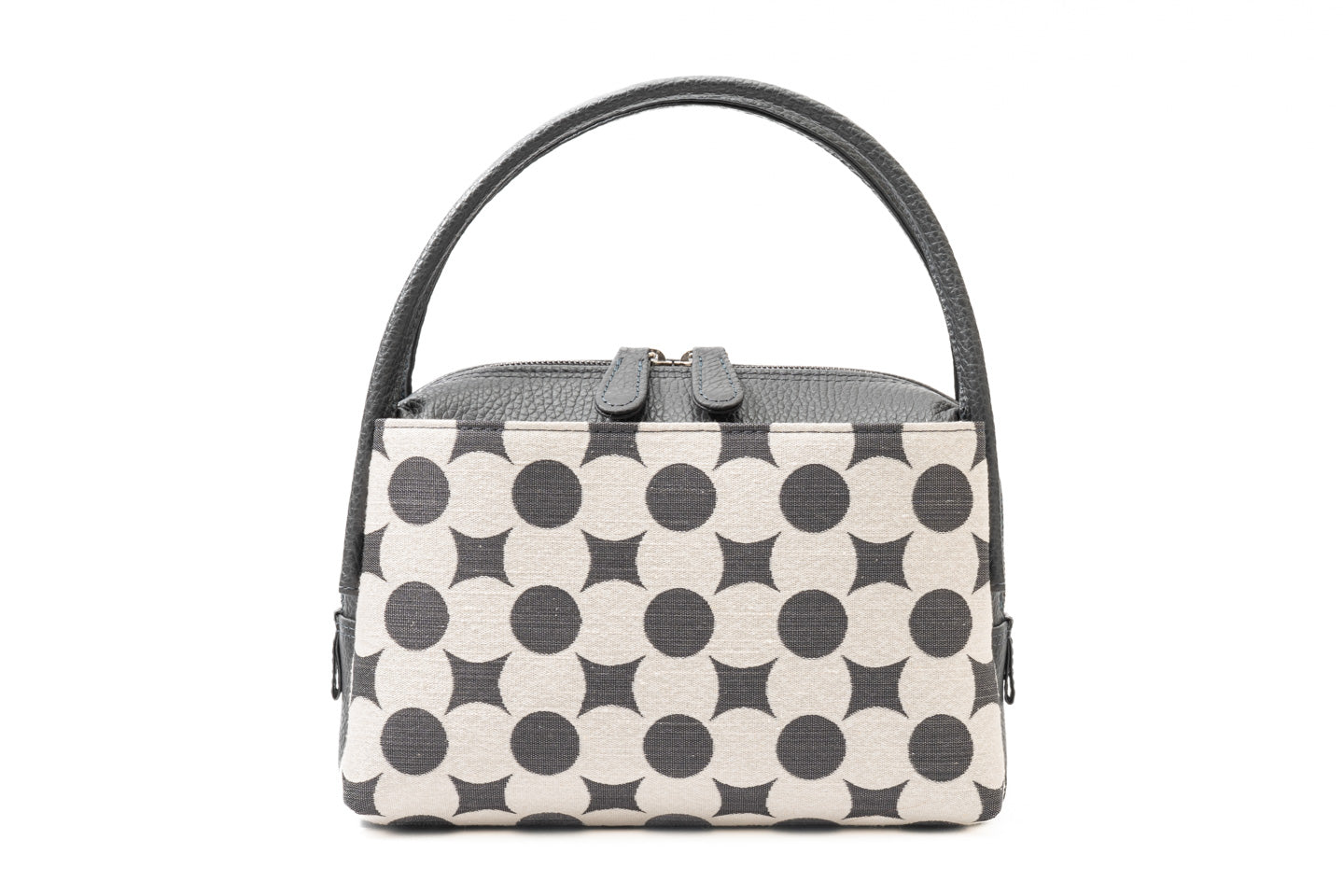 西陣の高度な織技術の中でも、特に緻密で奥深い表現を可能にする「紹巴(紬)織」の帯地を用いたバッグです。