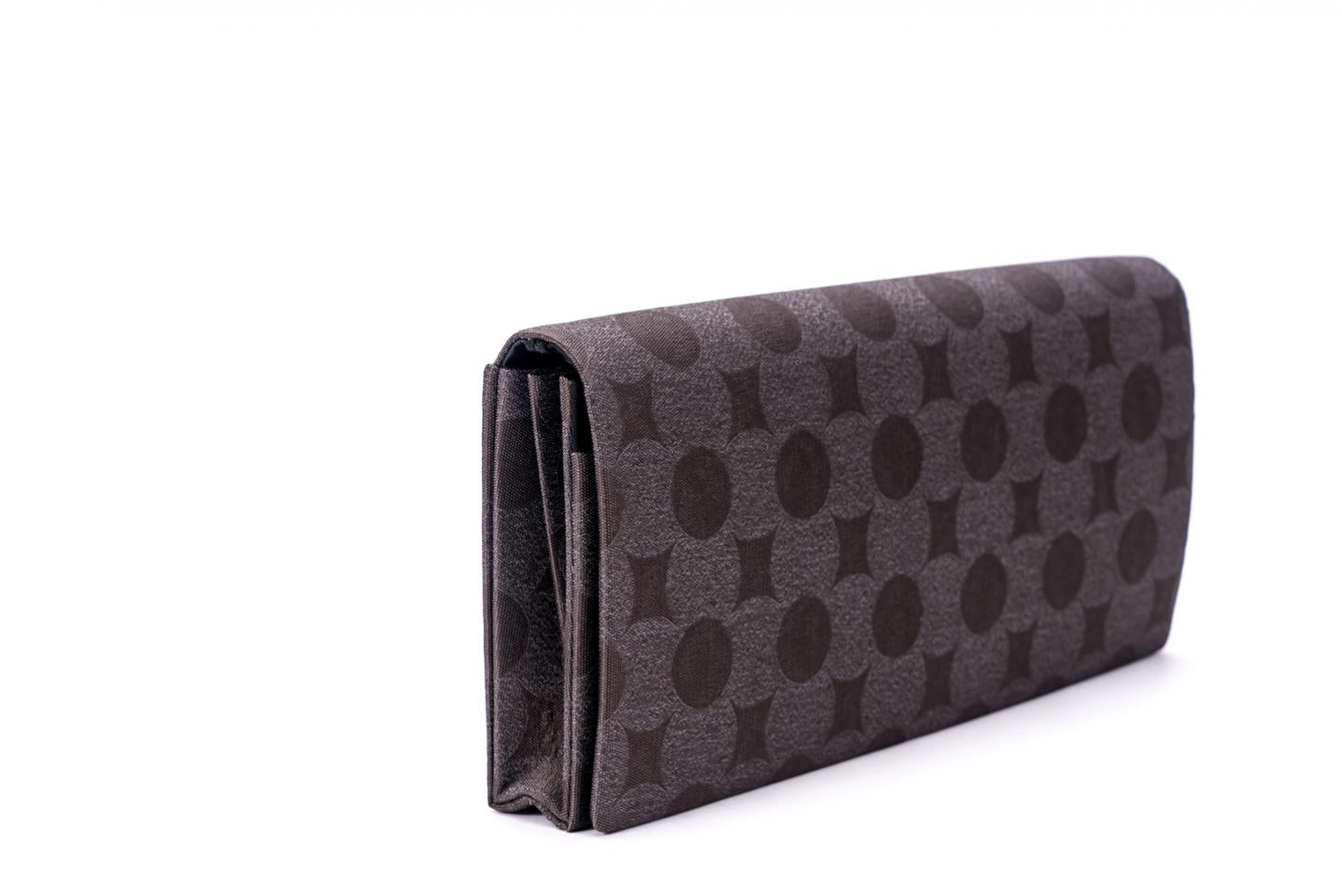 南蛮七宝文様の小ぶりクラッチバッグ【紹巴織/茶濃淡】