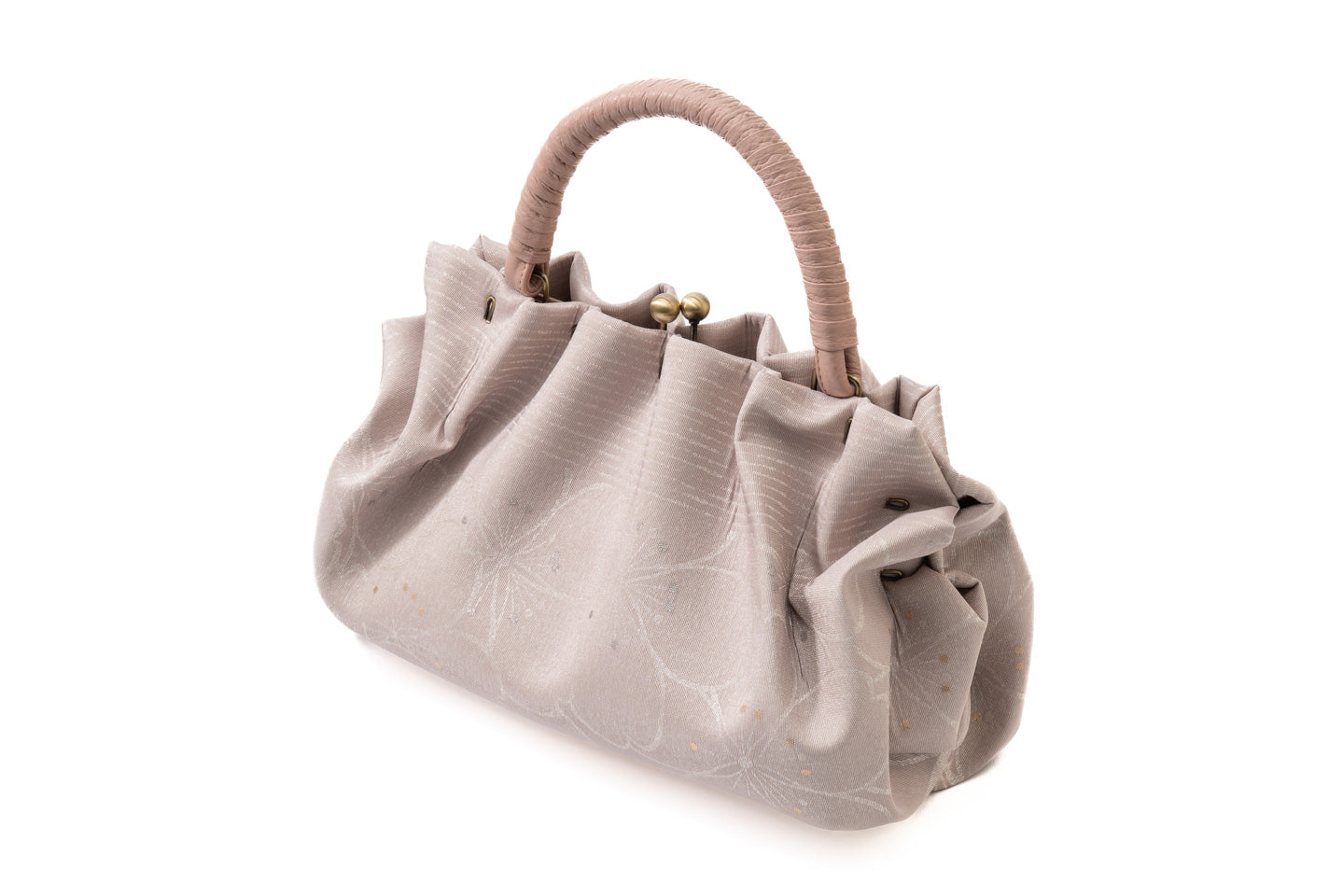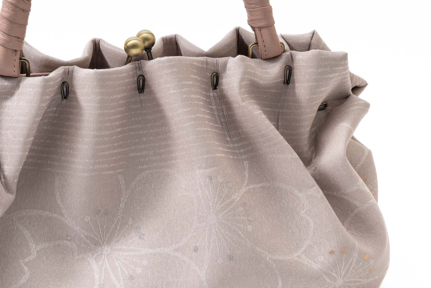帯地ならではの美しい光沢や発色、意匠を活かし、上品さの中に可愛らしさを添えたデザインに仕上げました。