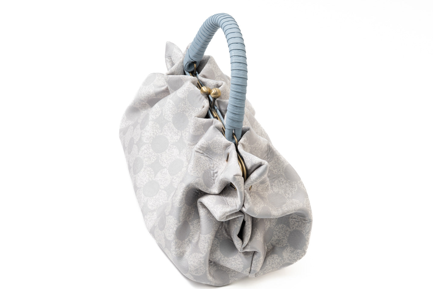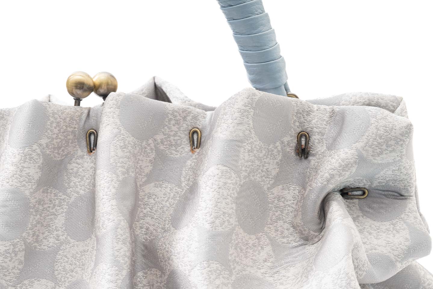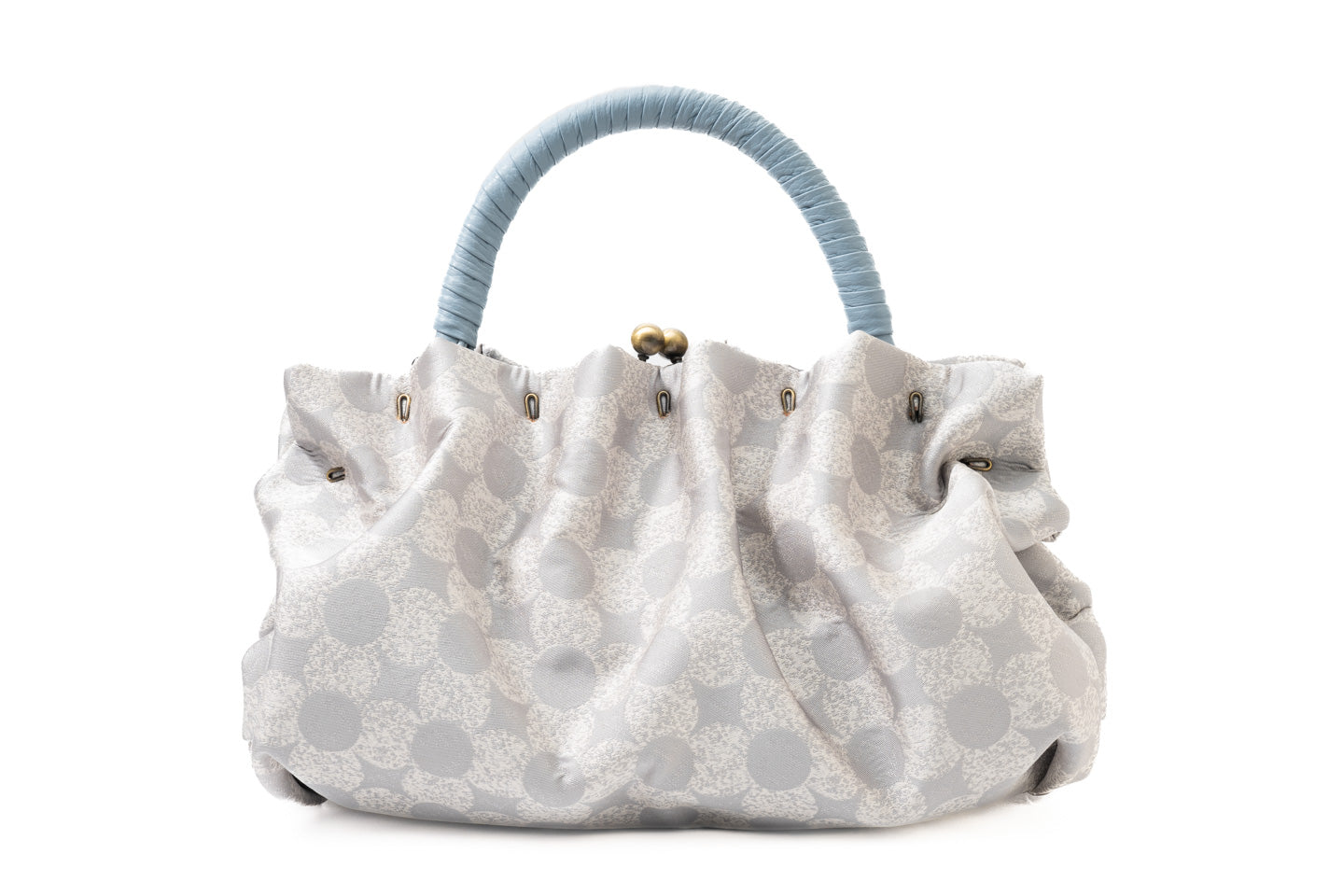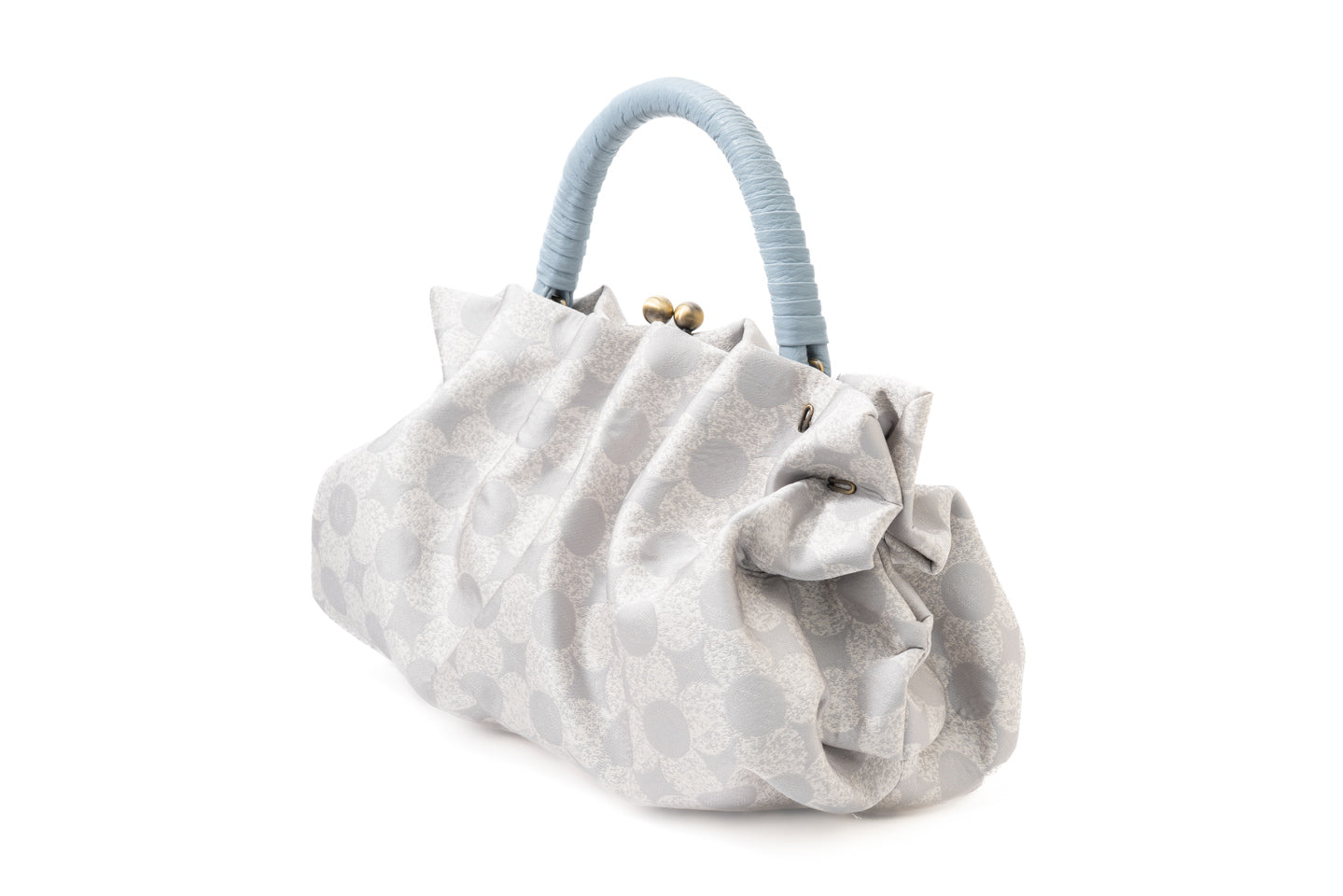ふわふわとしたドレープと質感をつくり出すため、見た目からは想像できない長さの帯地を使用しており、その織物(意匠や配色)ごとの特長を活かしてバッグにしています。