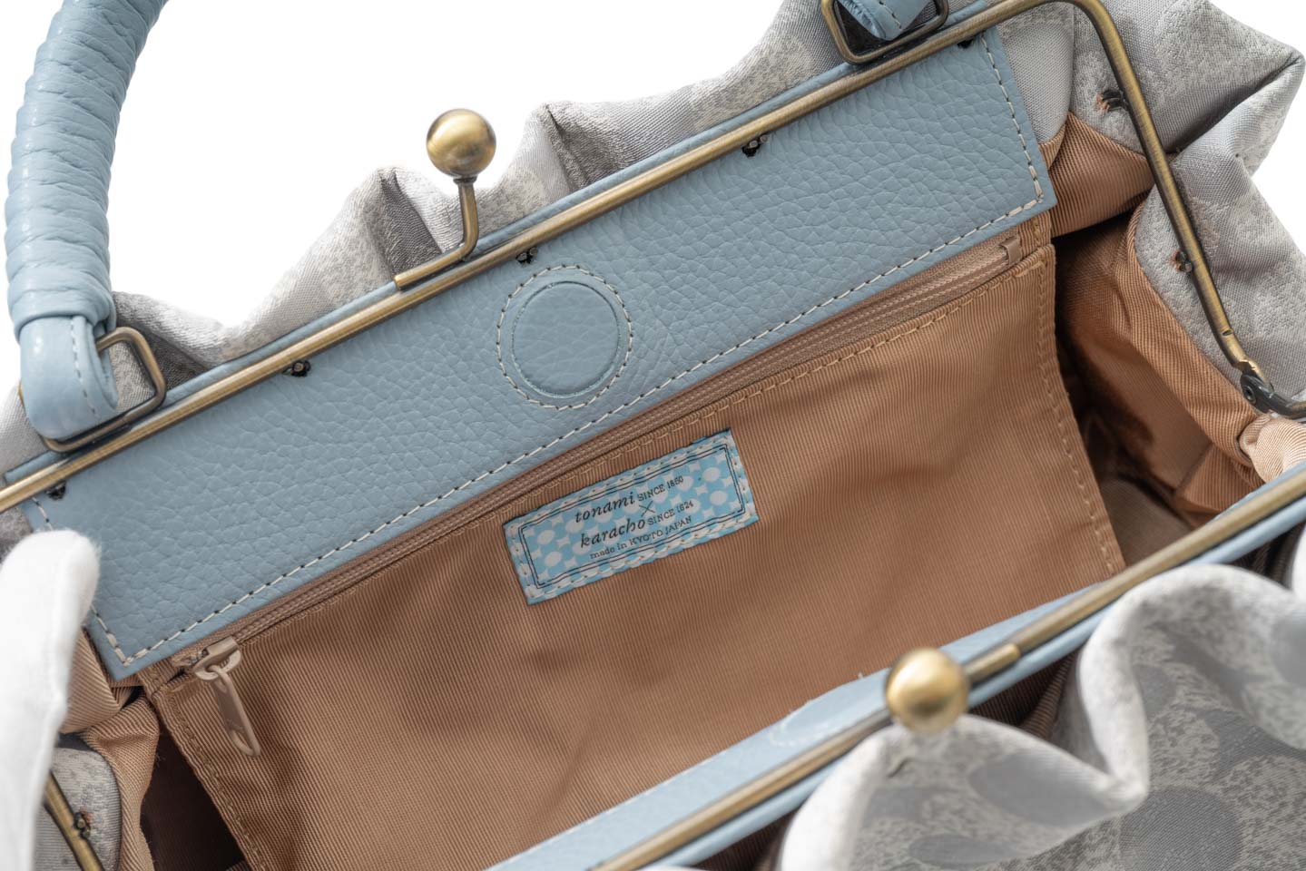 可愛らしく優しい感じの雰囲気を損なわないように、開口部の大きながま口の口金は別注で制作。