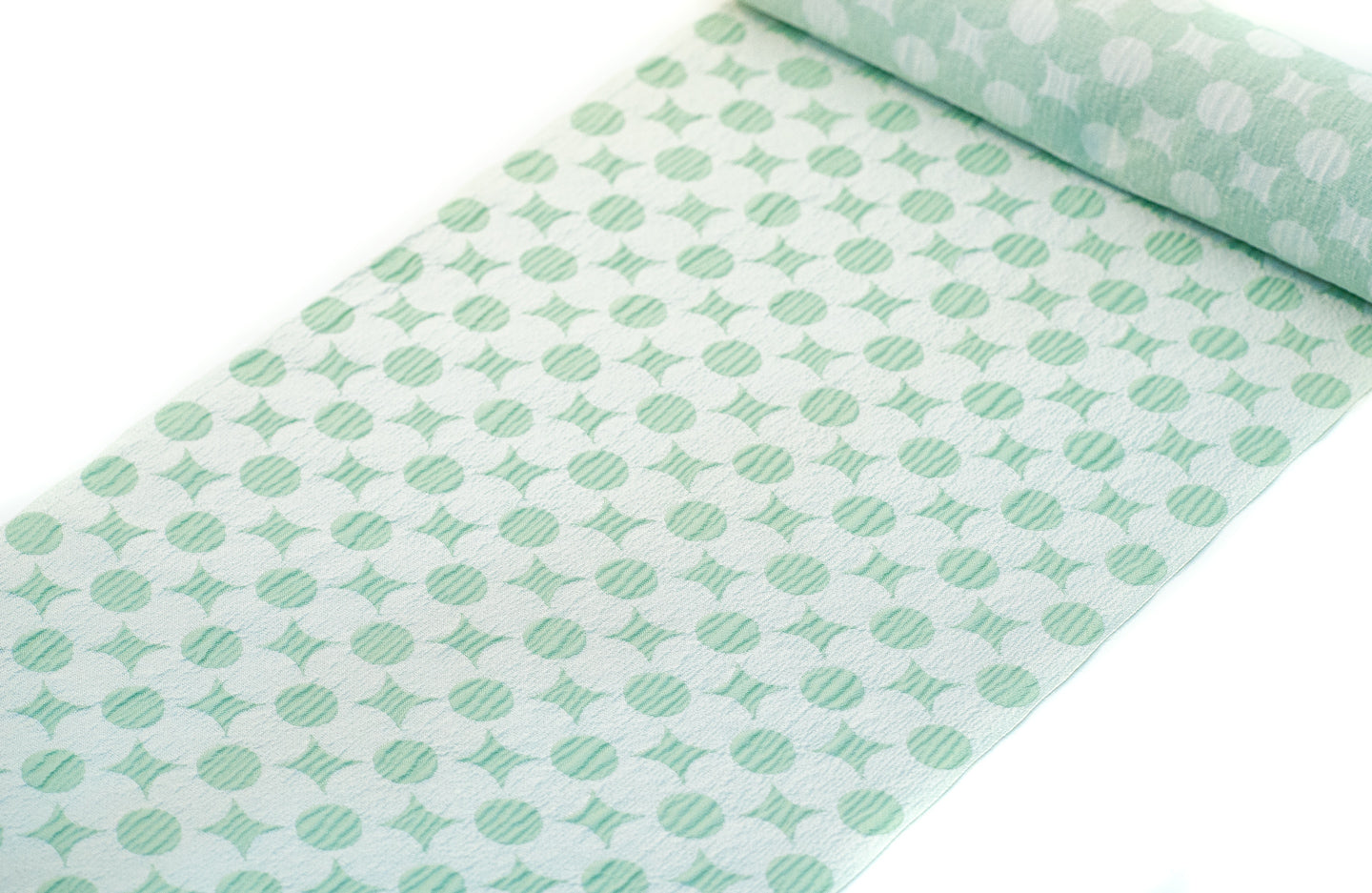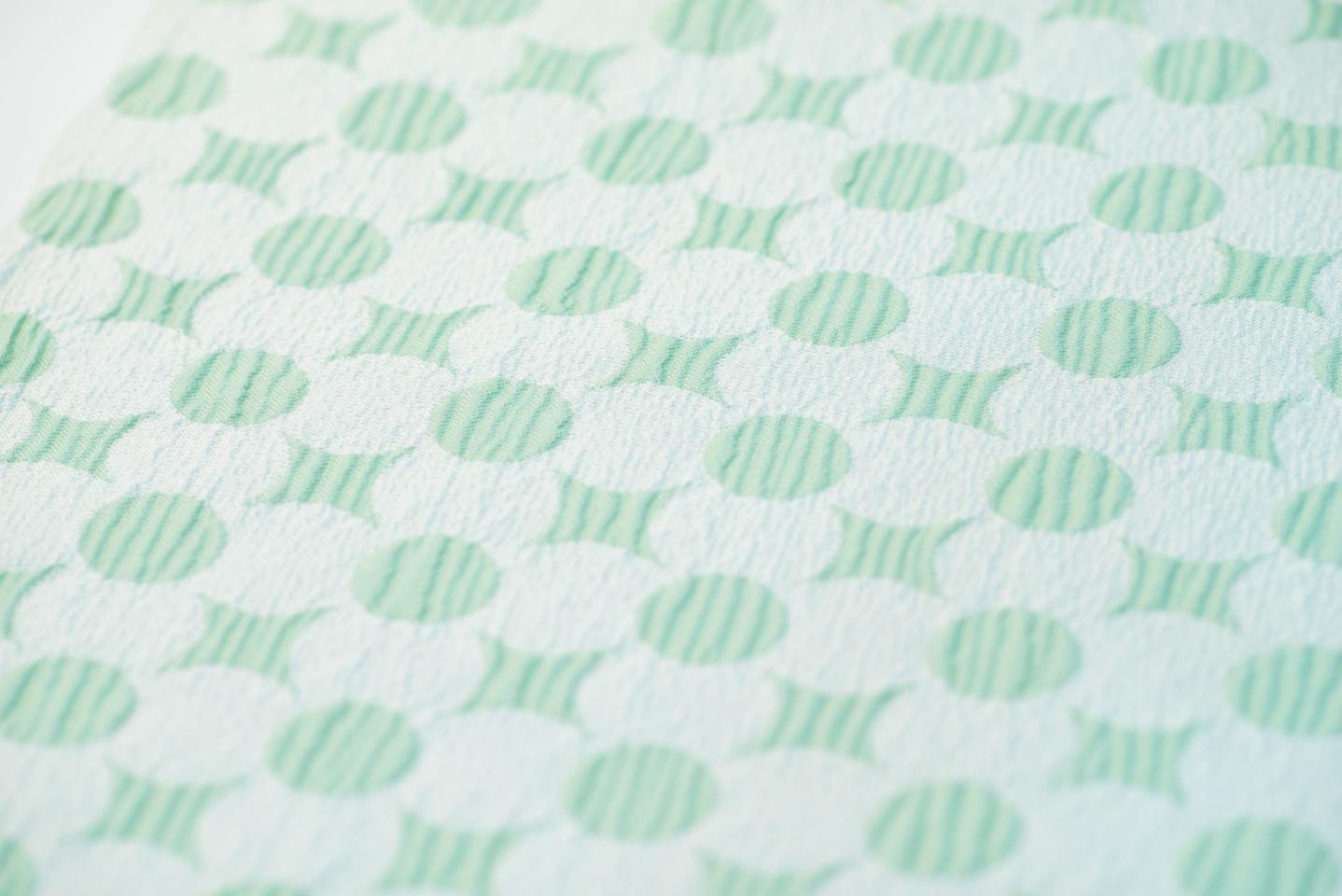 会員限定【帯地から選ぶ利休バッグのオーダーメイド】しぼ織/南蛮七宝文様(白グリーン)