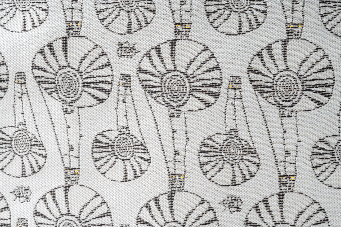 帯地の意匠はとなみ織物と舟田潤子氏とのコラボレーションで制作する『CandyCircus』。