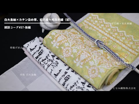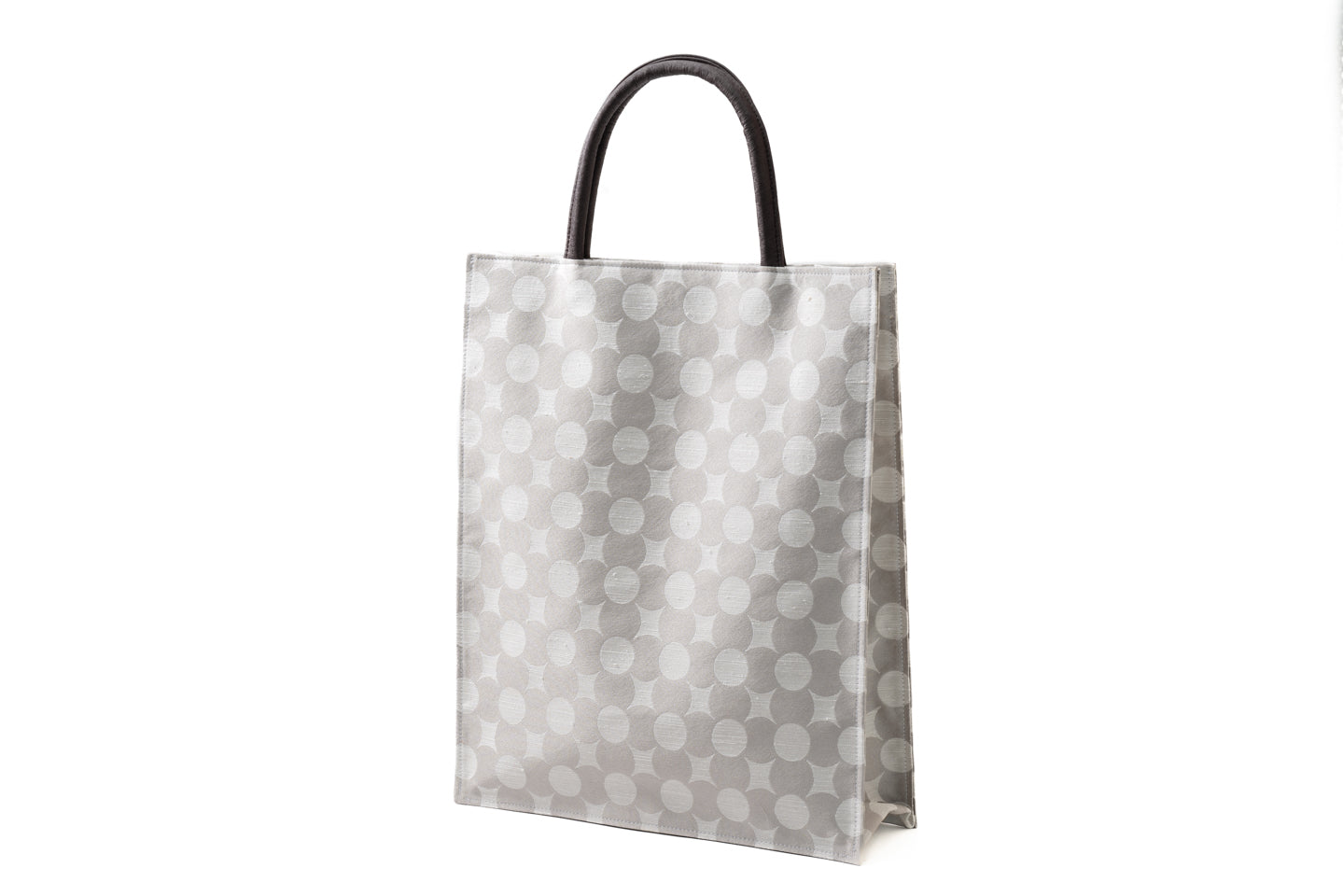 【南蛮七宝のお太鼓トート・Lサイズ】白グレー/紹巴紬織