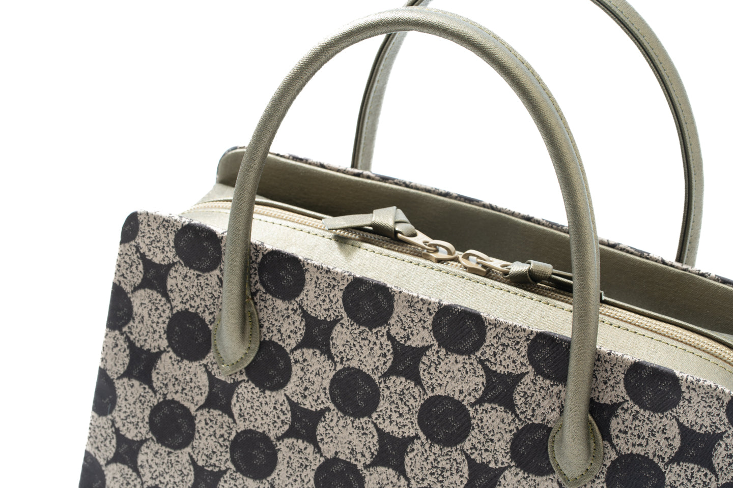 京都西陣の織元となみ織物が製織する帯地をつかって、仙福屋がつくる利休バッグです。