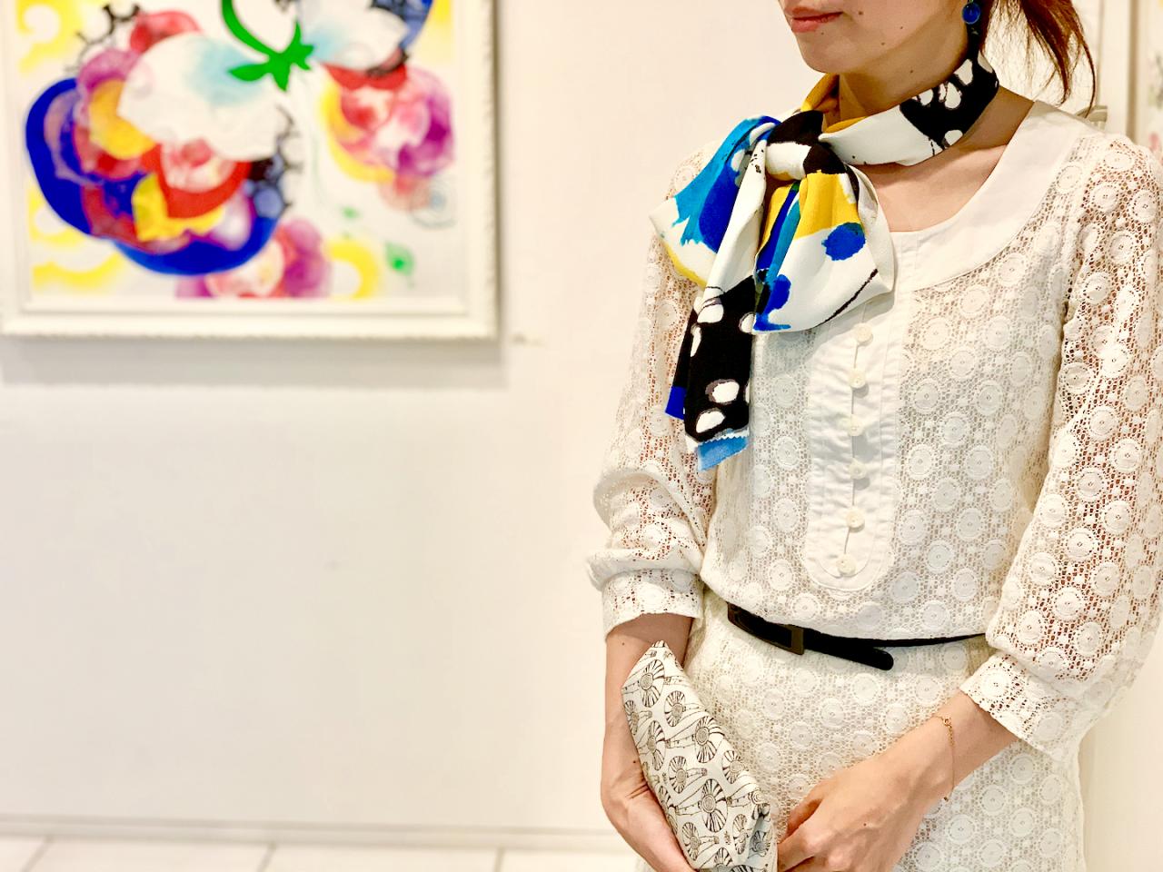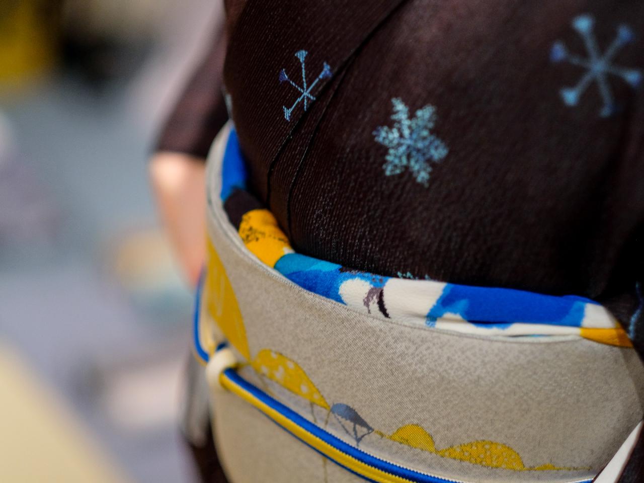 帯揚げの意匠は、となみ織物と舟田潤子氏とのコラボレーションで制作する『CandyCircus』から。『サーカス』をテーマとして、作品を制作されている京都生まれの銅版画家 舟田潤子氏。