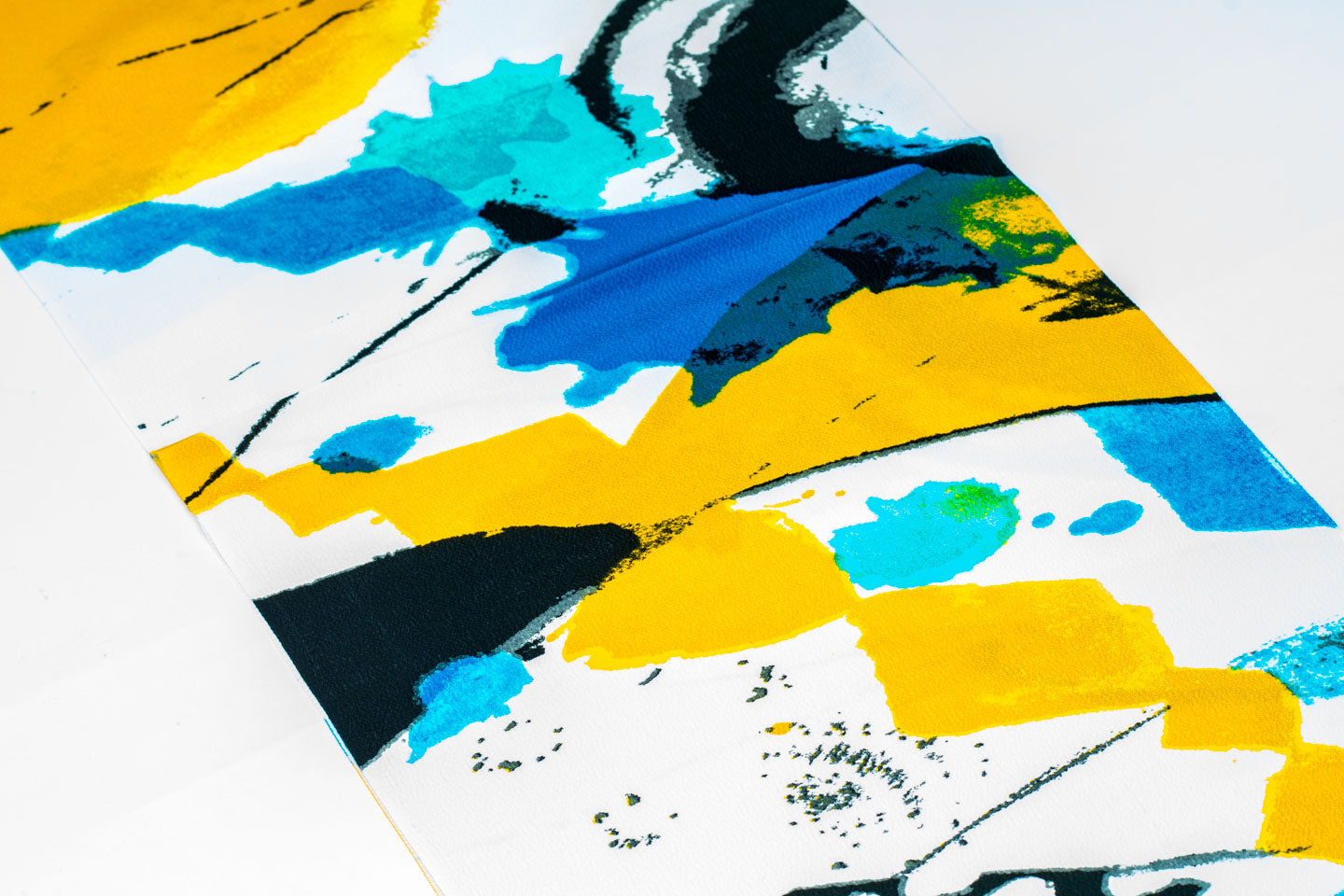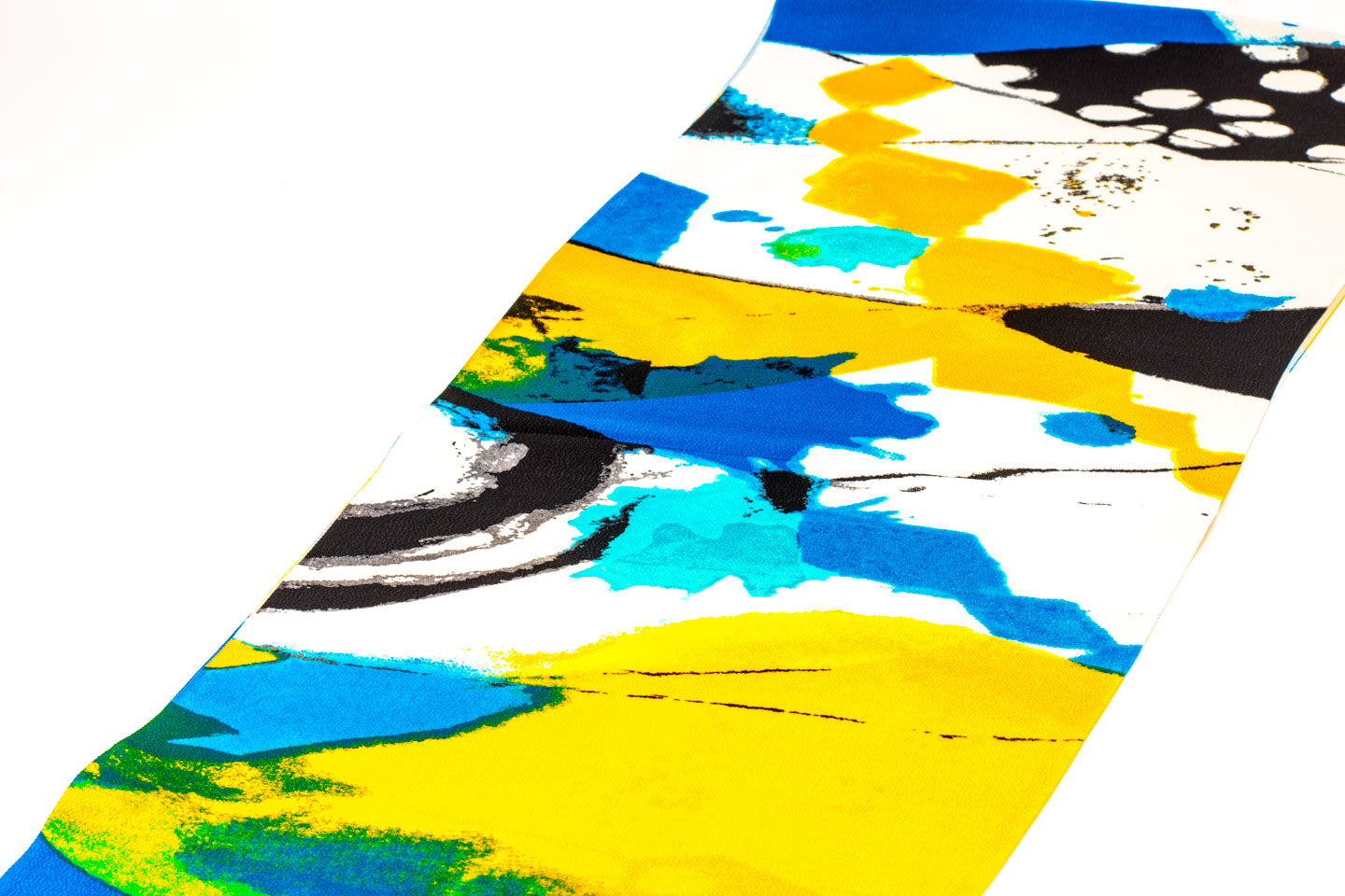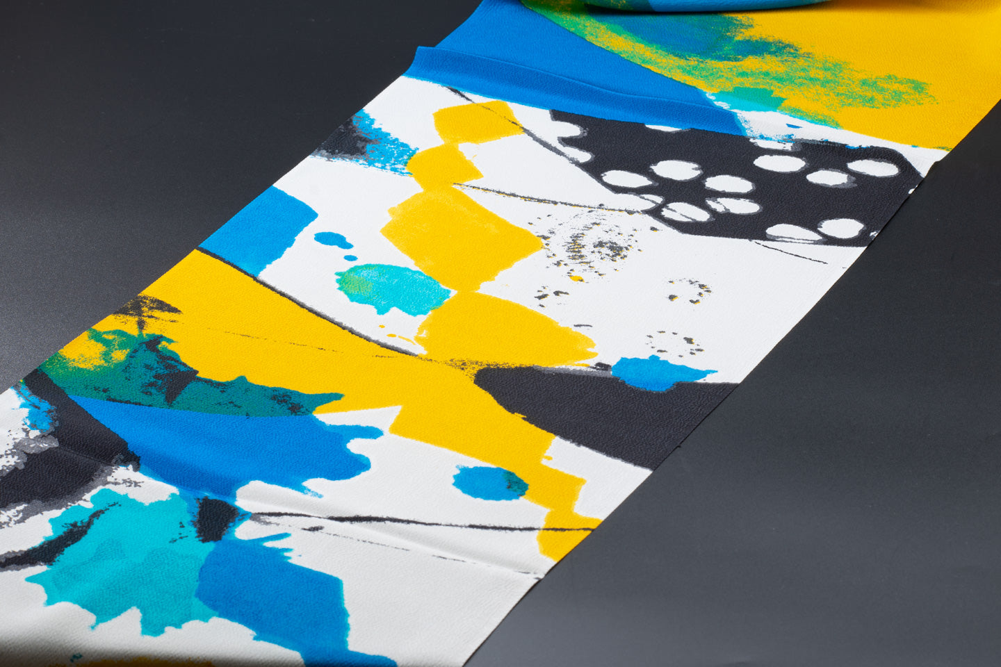 この帯揚げでは、アクセントとなる挿し色を数多く使って染め上げています。
