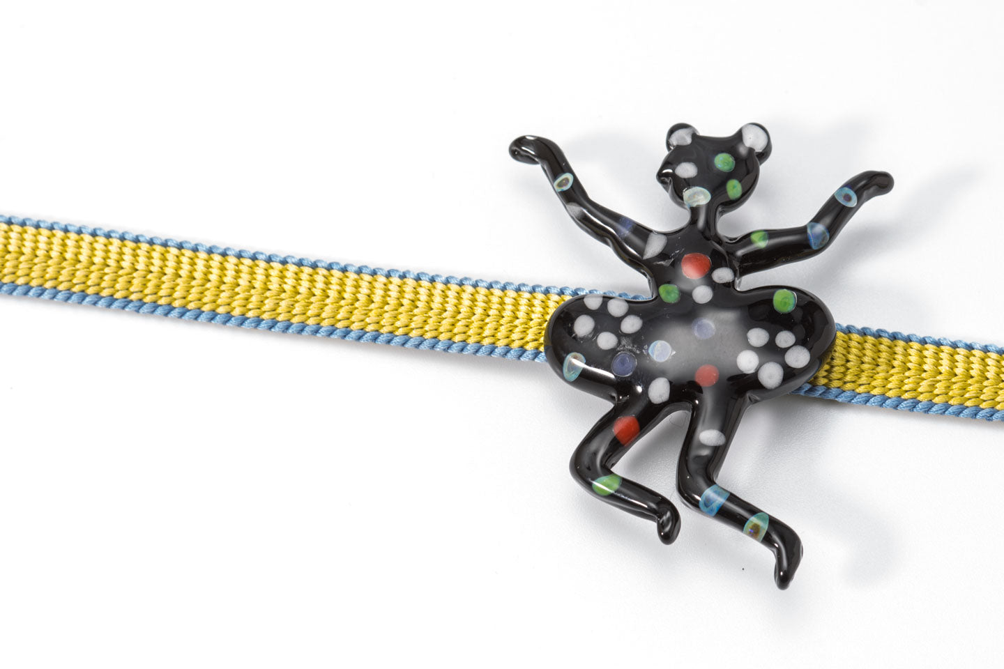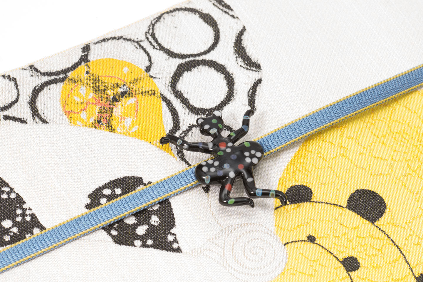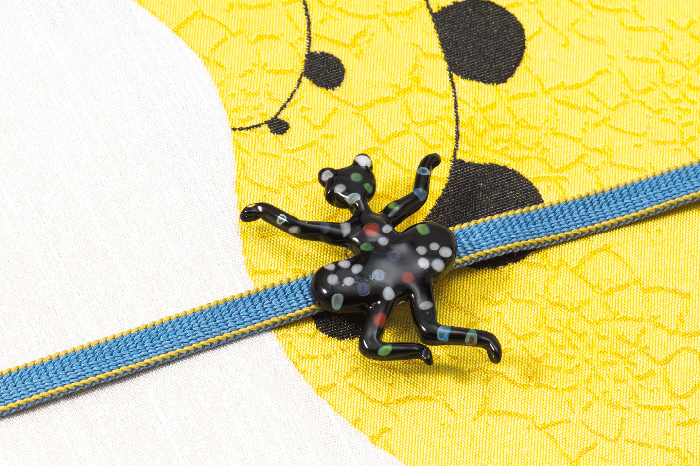 この帯留めは、作品から踊り子が出て、帯の中を踊り回る、そんな楽しさをもたらせてくれます。