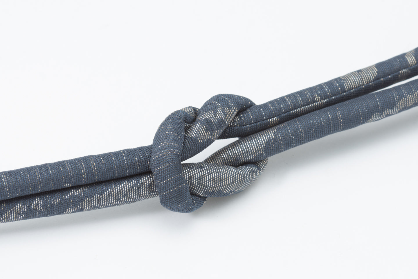 この総紗縫の丸ぐけは、帯地と同じく一年を通じて帯や着物とコーディネート可能。
