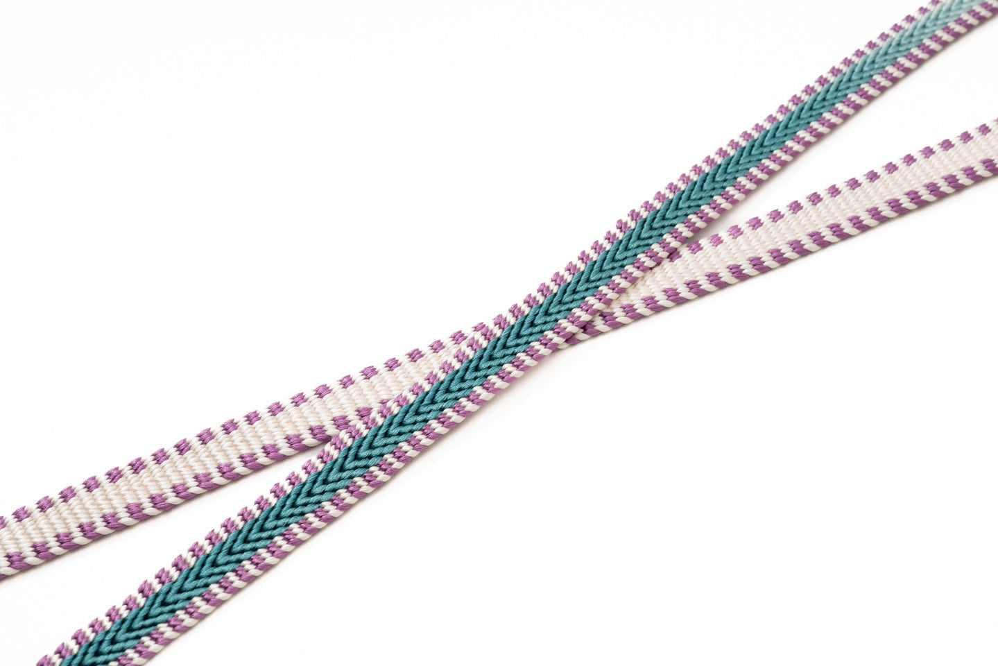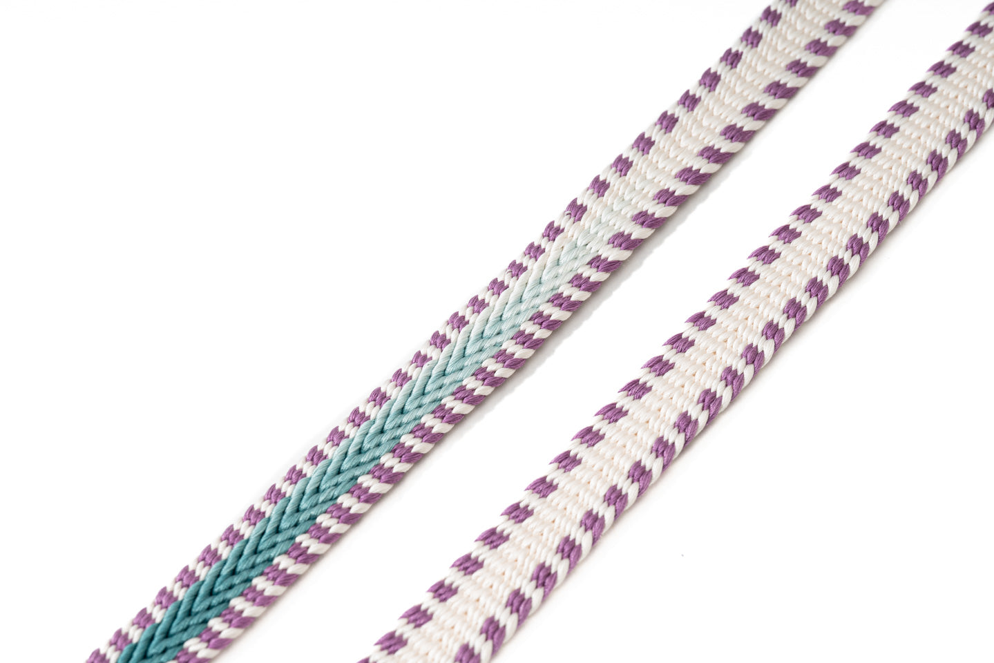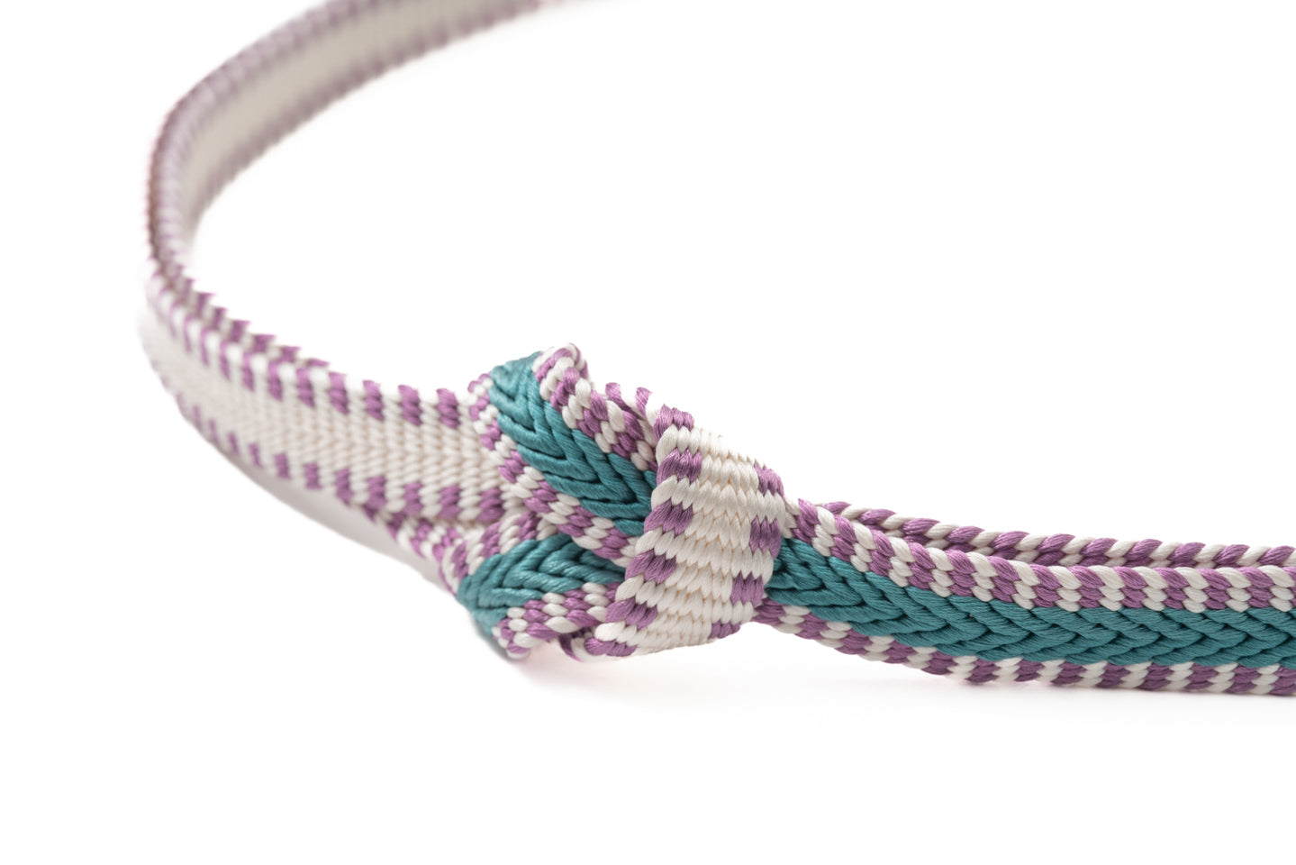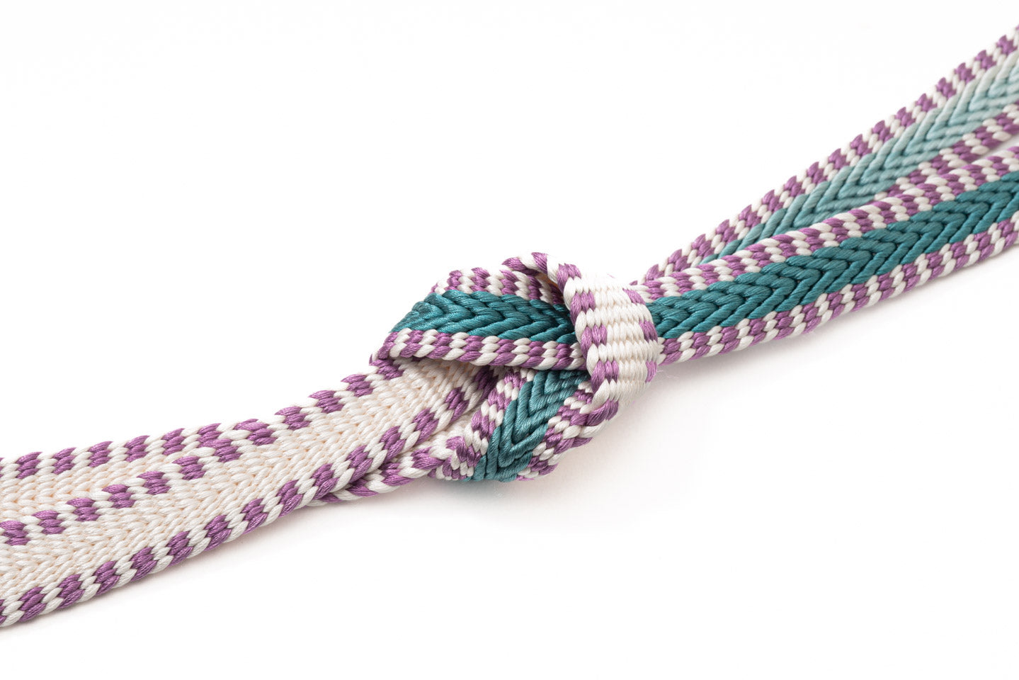 三井寺に奉納されている経典の組紐を元組み上げた帯締め。