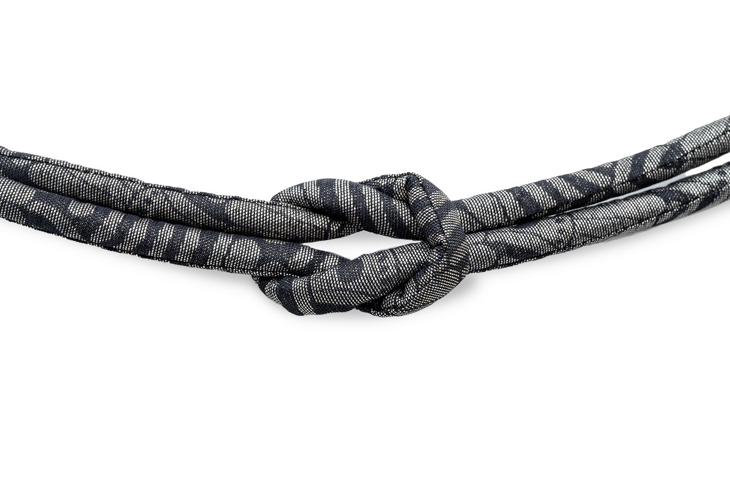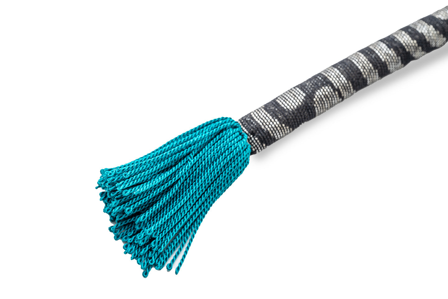 【総紗縫の丸ぐけ帯締め】帯地は柄を織り上げた濃いグレー色。房:ターコイズ
