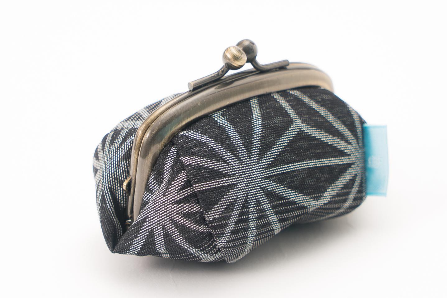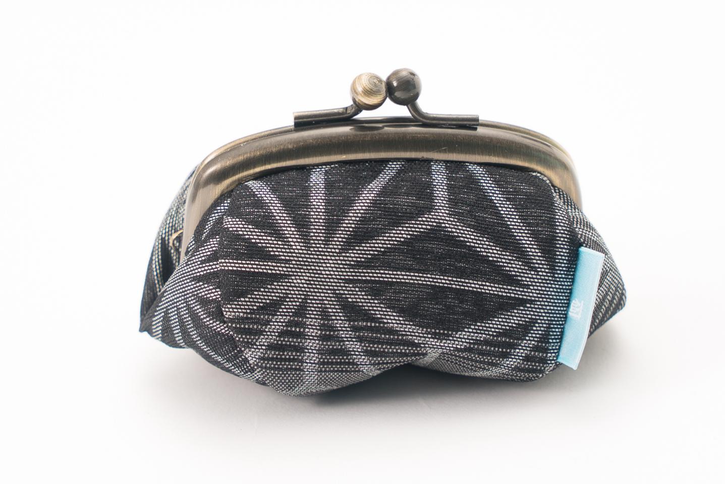 【西陣織の絹のがま口/総紗縫】麻の葉(濃いグレー)