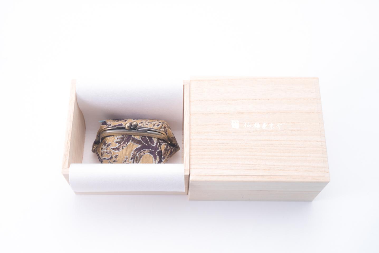 京都西陣の織元となみ織物が製織する帯地を使った、『仙福屋の絹がま口』です。