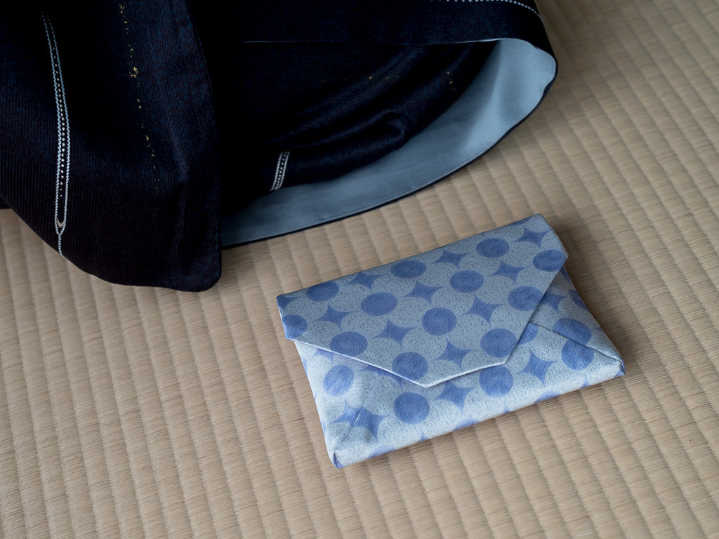 懐紙入れのように「袱紗・扇子・懐紙・菓子切」を入れたり、替えの足袋を入れることができます。