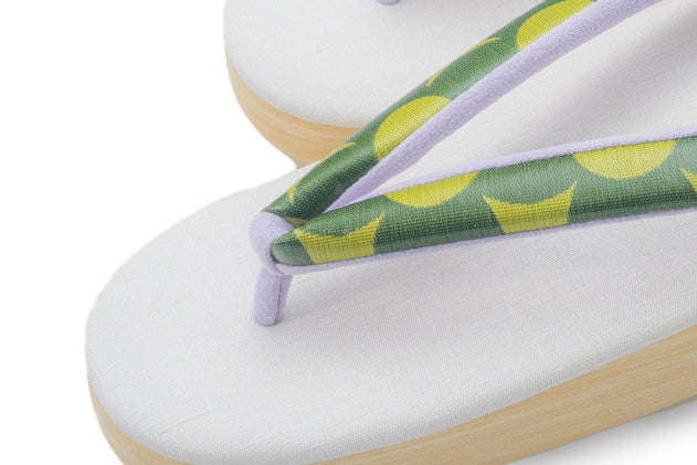 鼻緒と台を圧着し、鼻緒にはコーティングを施しているため、晴天だけでなく雨天時にもお履き頂くことができます。そのため、『今日は、少し雨が降りそう。』という日には、とっても便利な草履です。