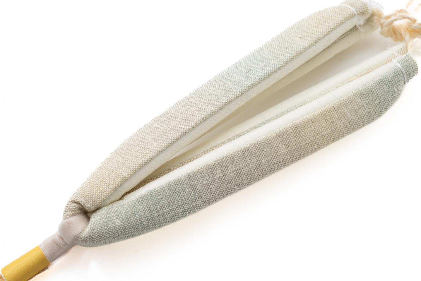 見た目も柔らかく、フワッとした織と唐草の雰囲気が足元に優しさを与えてくれる、そんな花緒です。