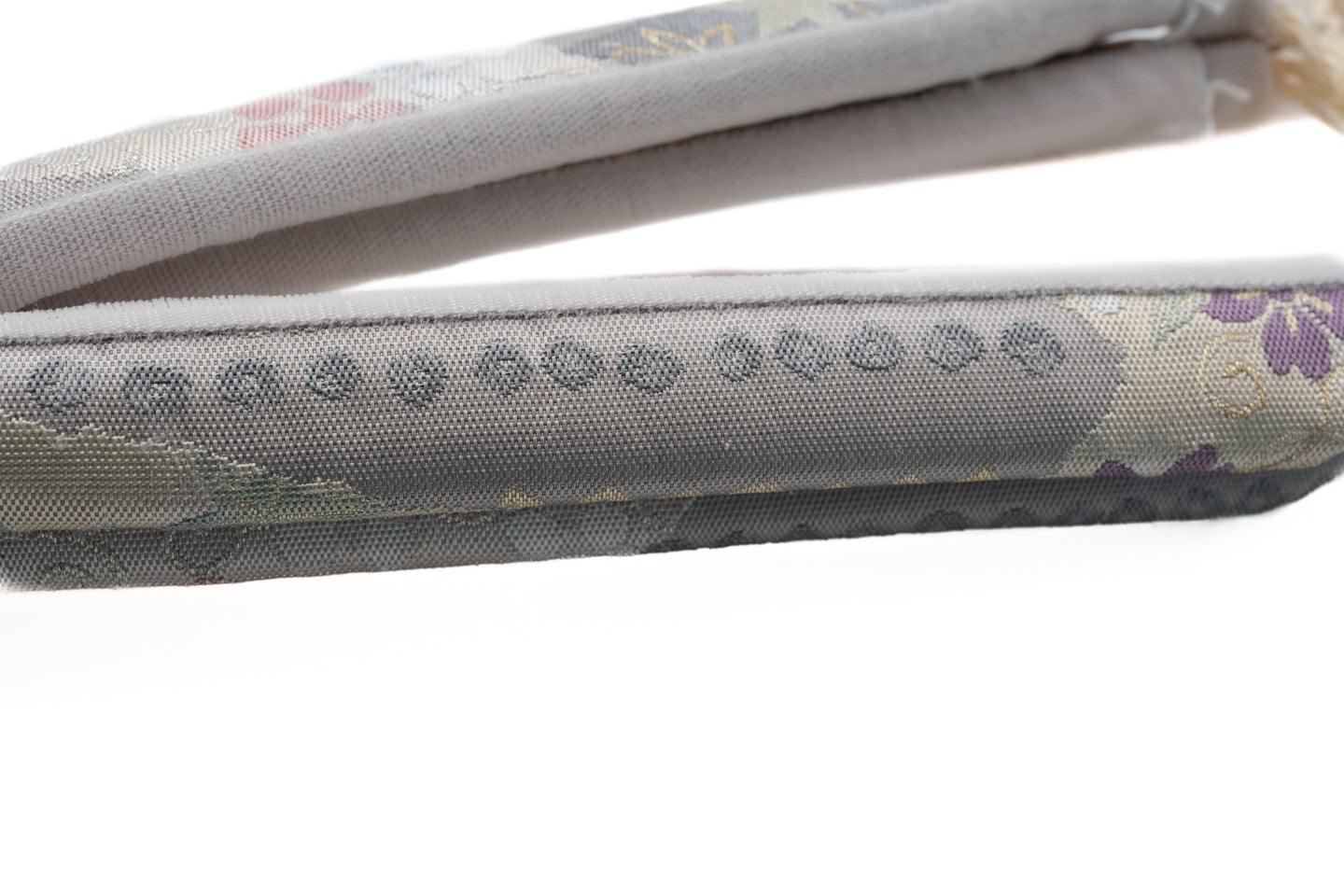仙福屋の草履で使用する花緒には、京都西陣の織元となみ織物が制作する帯地を使用しています。熟練の職人の手で織られた絹織物は、大変美しく草履の花緒(鼻緒)としても素晴らしいものです。