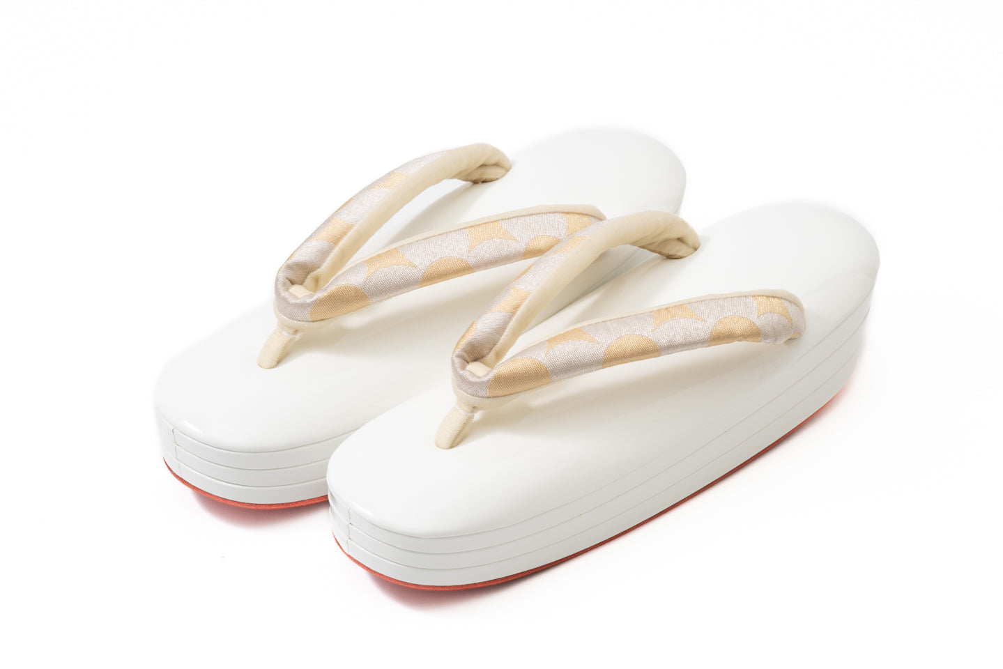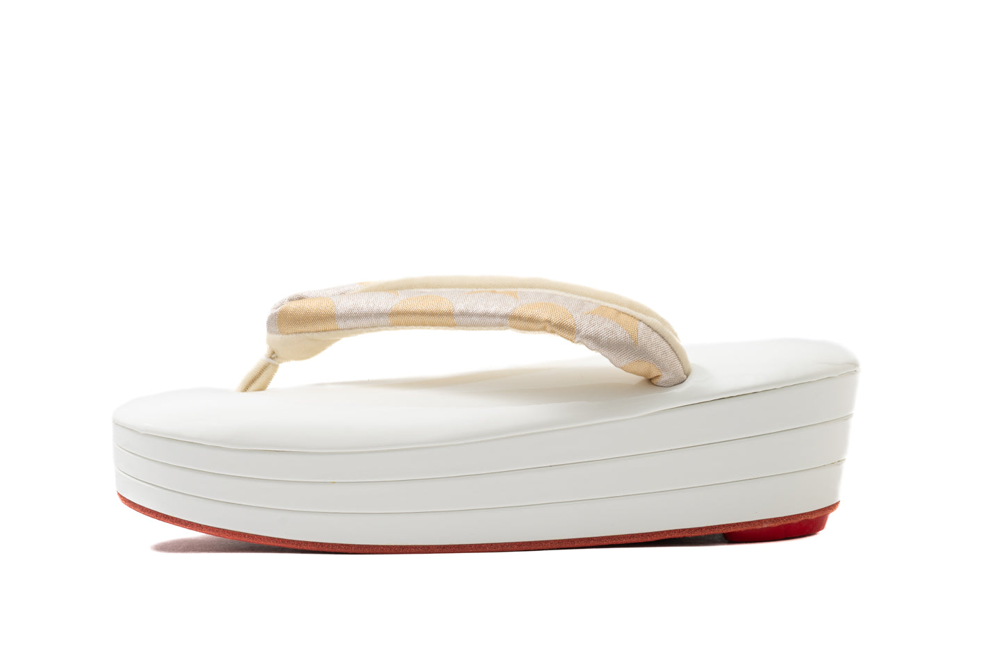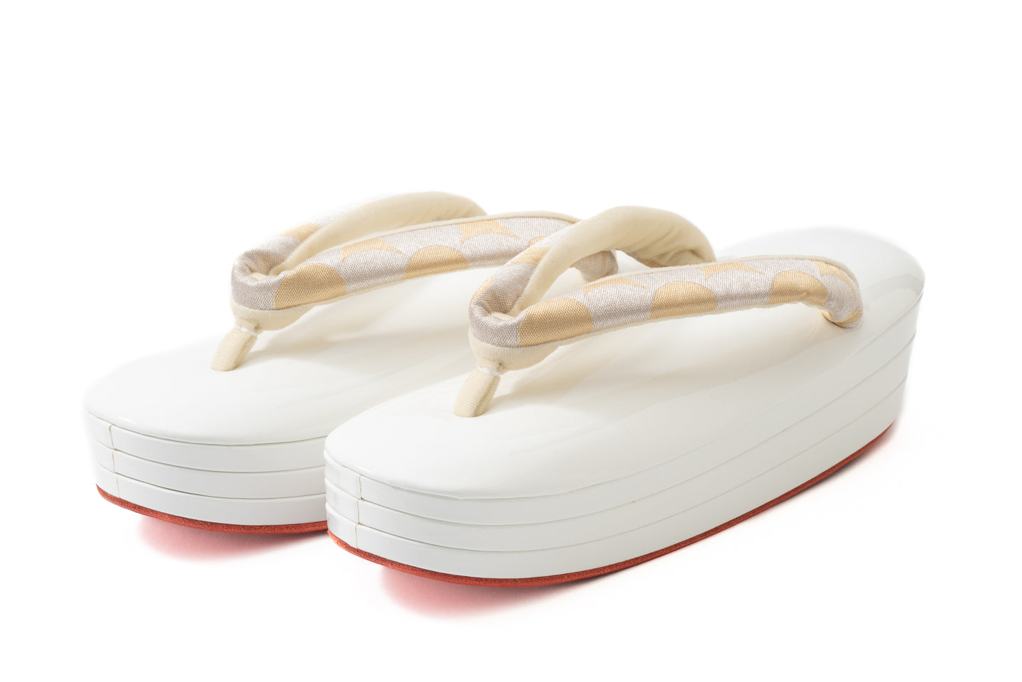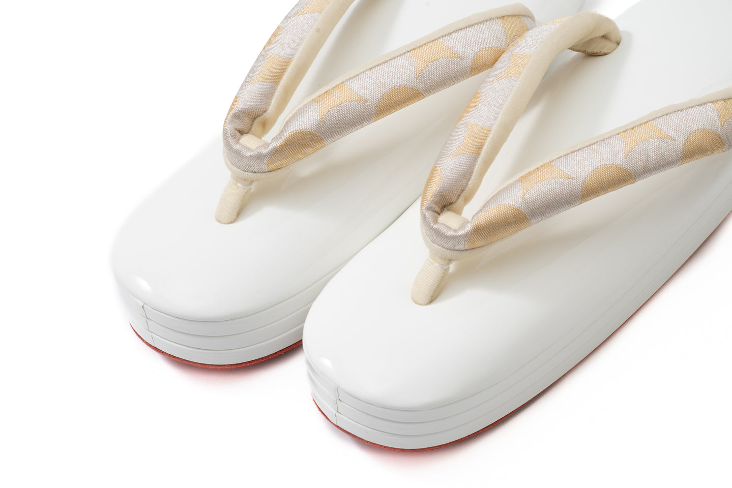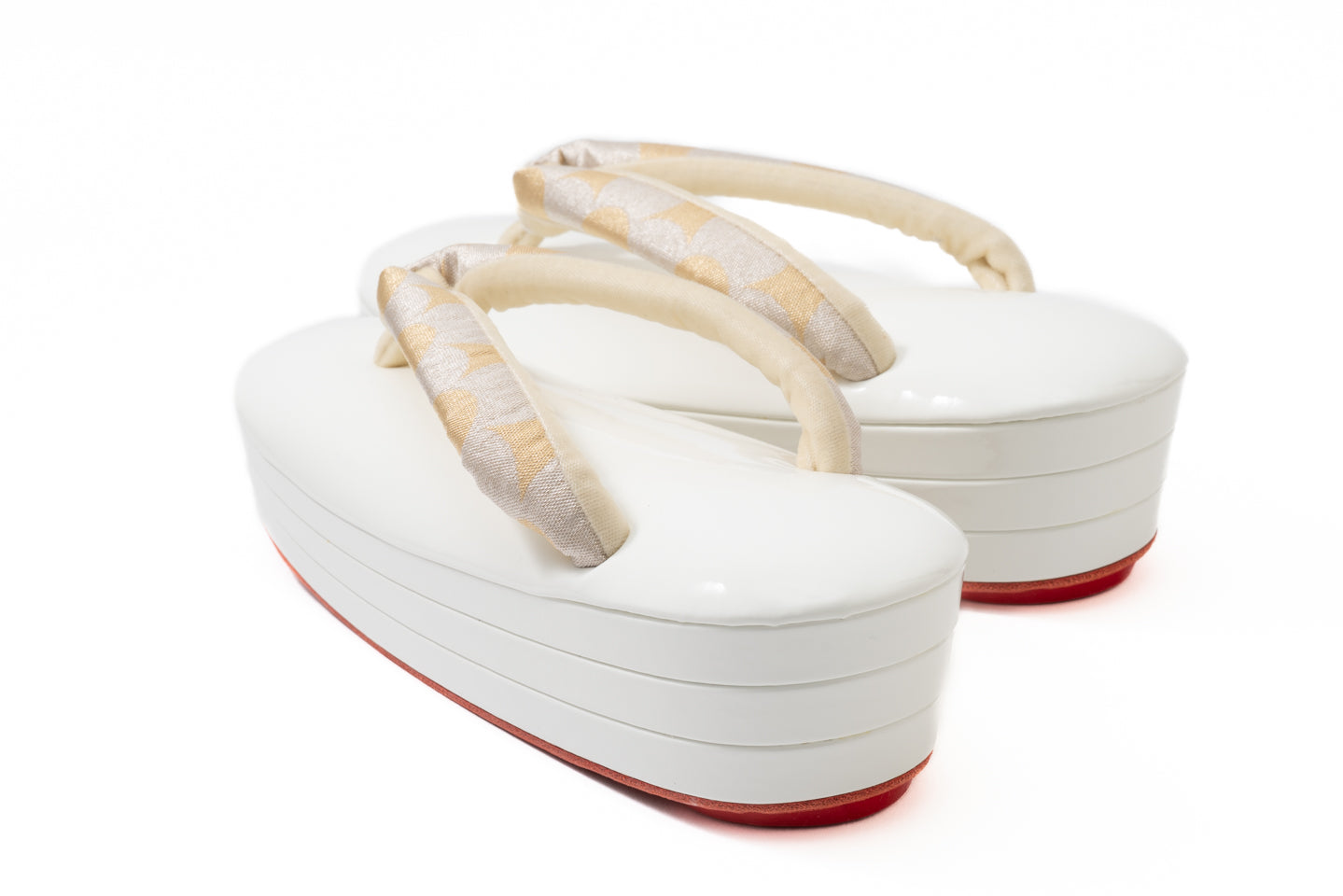 受注制作(S~Lサイズ)【南蛮七宝のエナメル真綿入り三段赤底草履(白銀金)/つぼ通し】