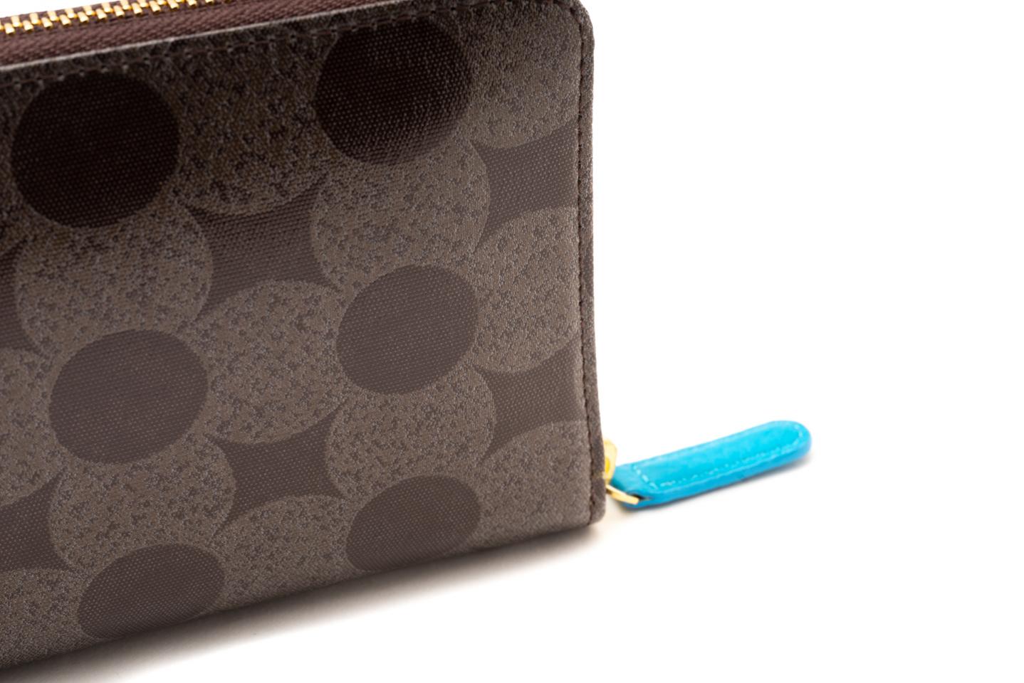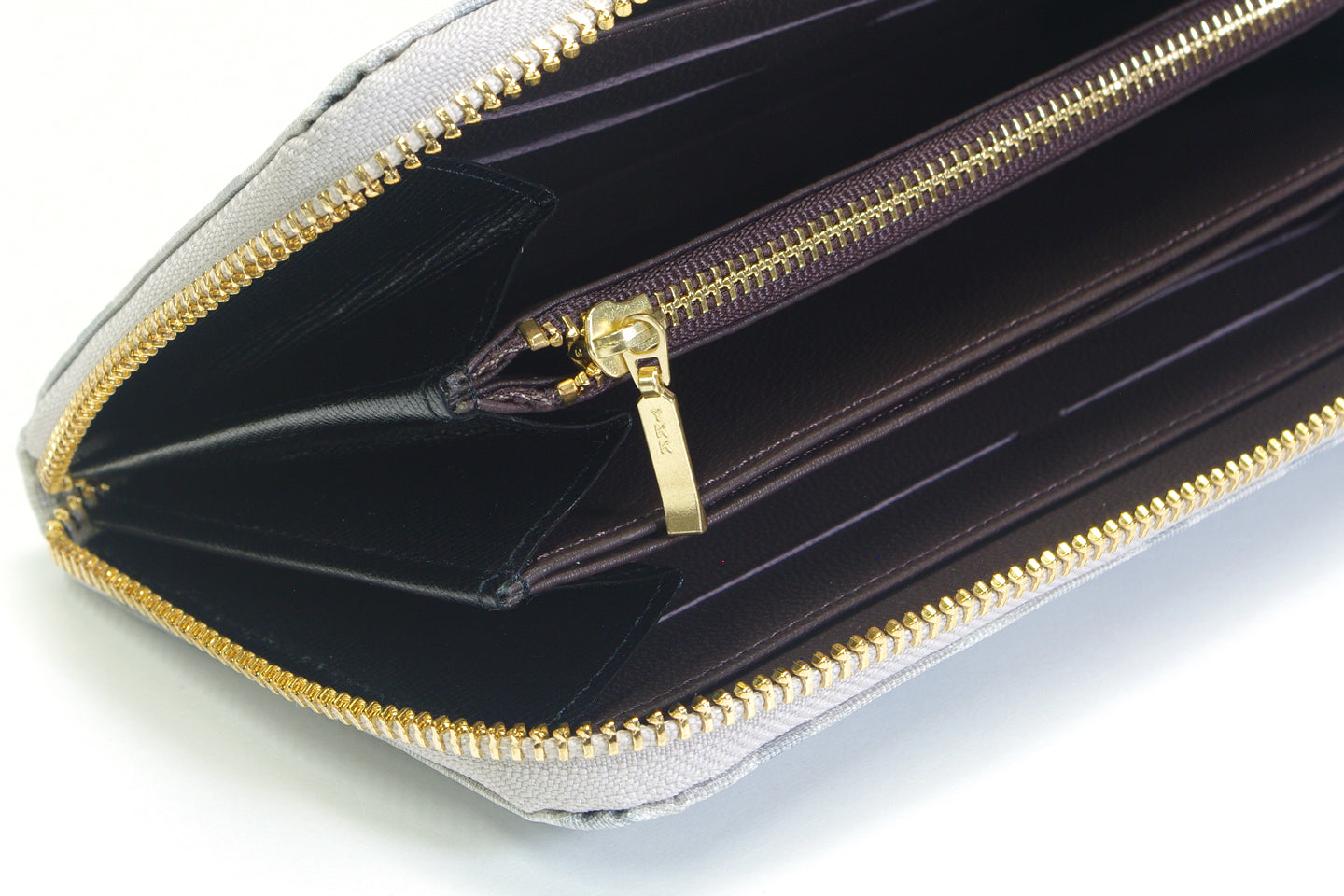 財布の周りをファスナーがコの字状に囲みます。クレジットカードなどの収納スペースも多くとり、メインのお財布としてお使い頂くことができます。