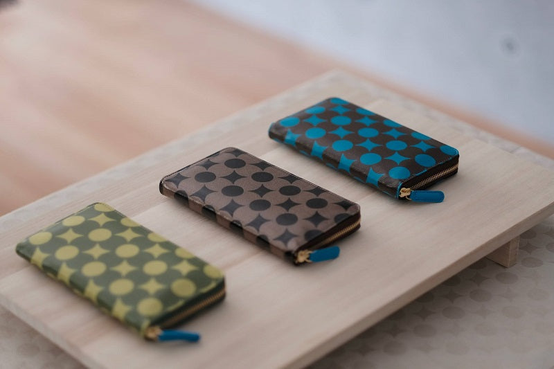 寛永元年(1624)から、ただ一軒受け継がれてきた唐紙の京都の老舗唐長。その唐長に代々伝わる約650柄の中から『南蛮七宝文様』を意匠としました。同じ柄でも色や条件によって、丸と星、または花柄にも見える不思議なデザインが魅力です。人の縁などを繋ぐ、吉祥文様としての側面も持っています。