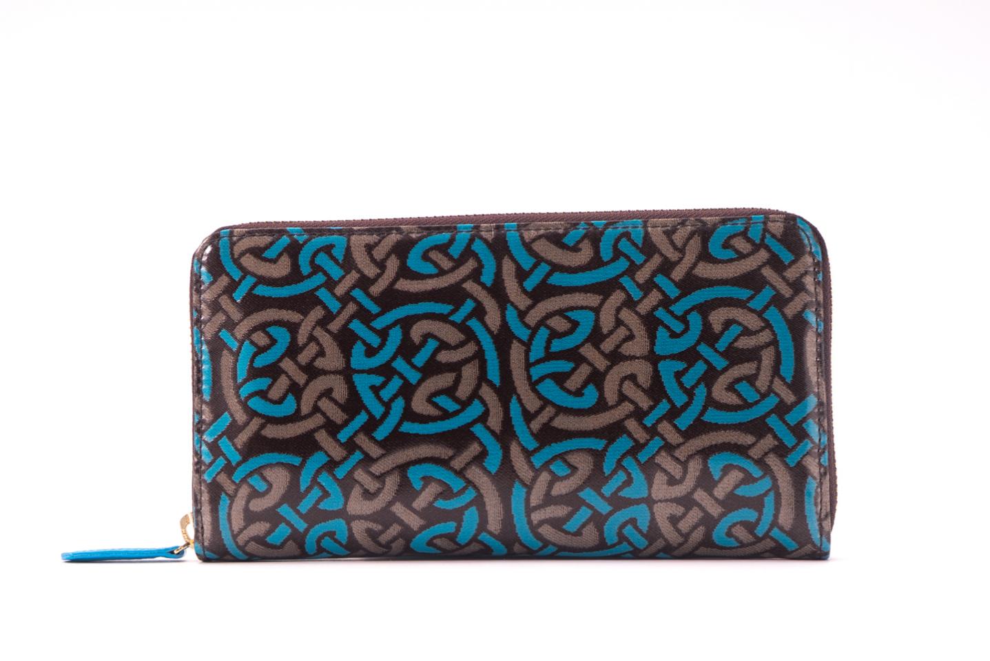 【仙福屋のコ型財布】Celticケルト文様/こげ茶×となみブルー/紹巴織(西陣織コーティング)