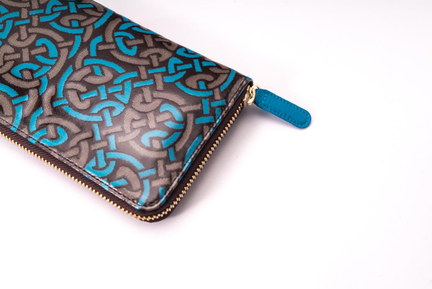 このお財布の意匠には、アイルランドなどに古くから伝わるケルト装飾文様を織りで表現。文字を持たなかったケルト人にとって非常に大切にされたデザインで、魔除けの意味を持っています。普遍的な意匠は千数百年経った今でも、根強い人気を誇っております。