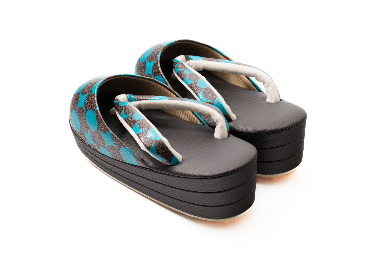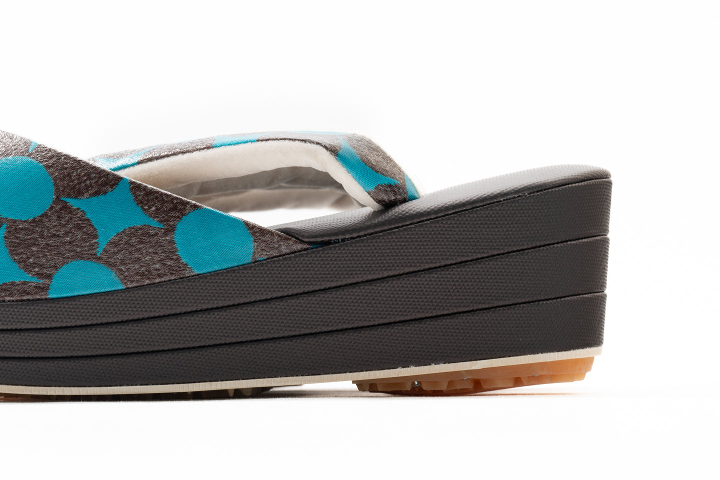『折角のお洒落をしたのに、足元だけが・・・。』そんな声にお応えするため、花緒にはコーティングした帯地を使用。