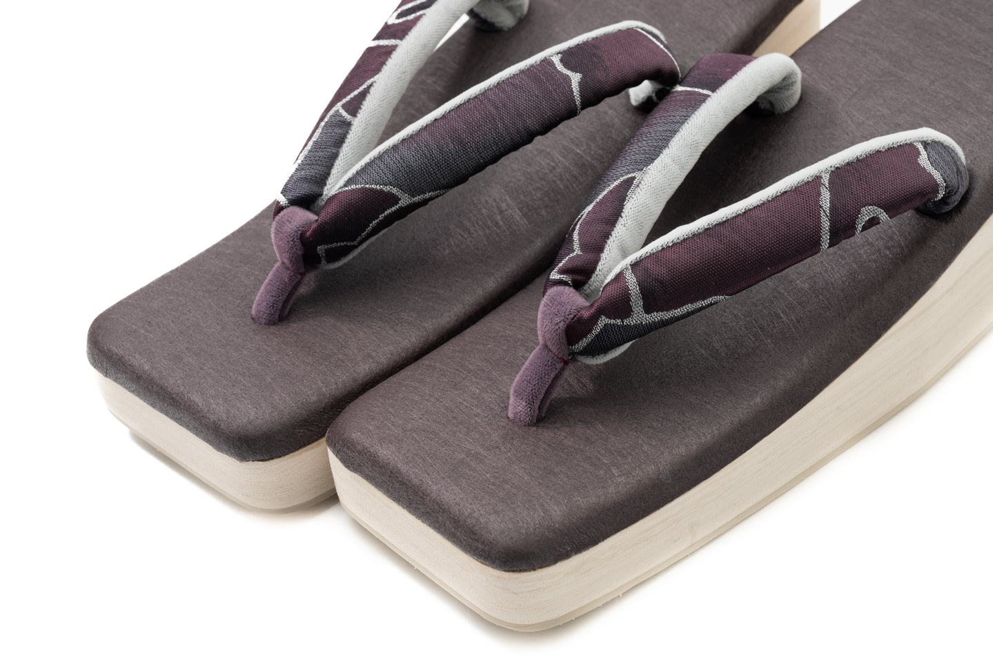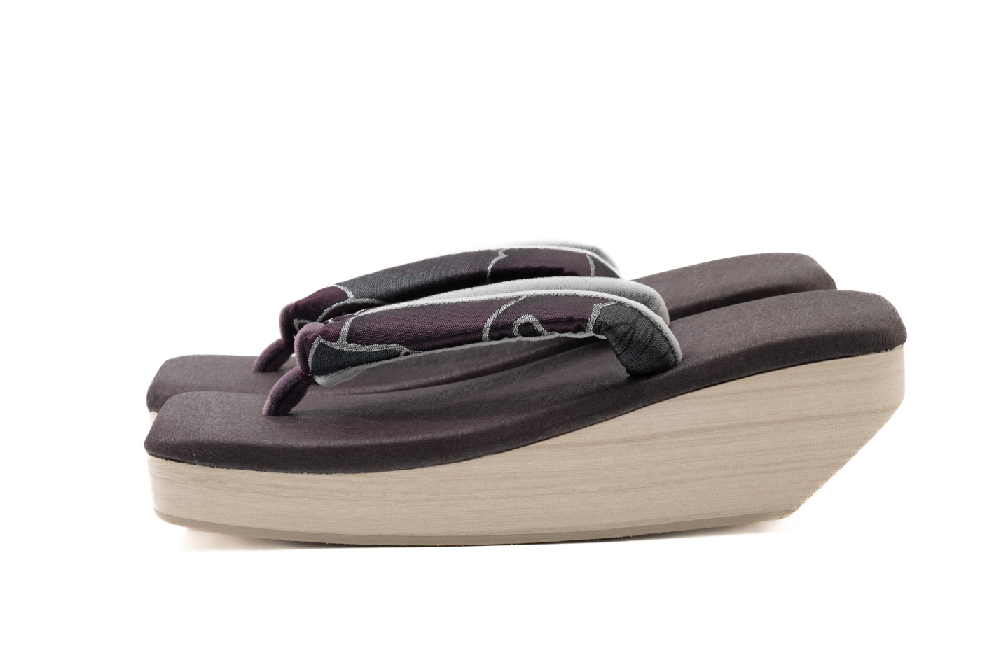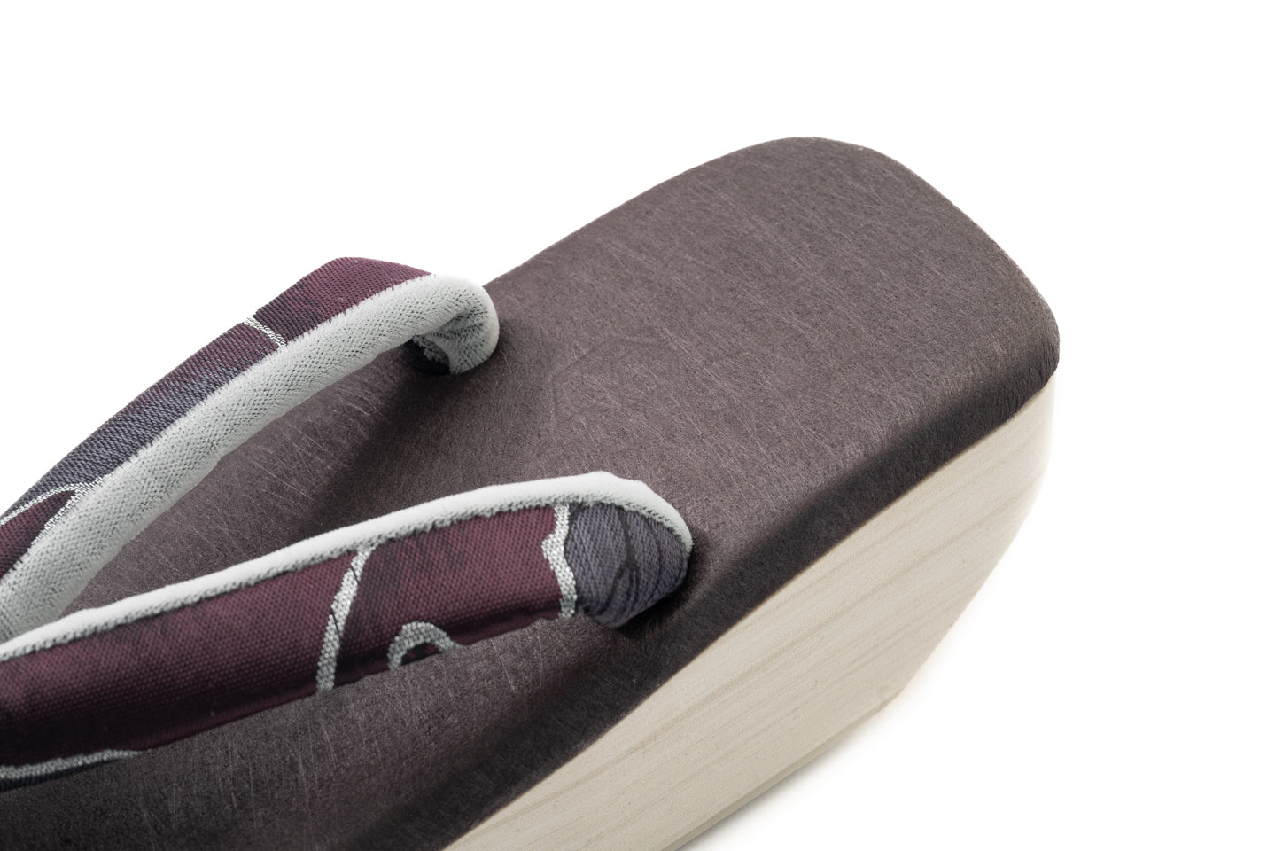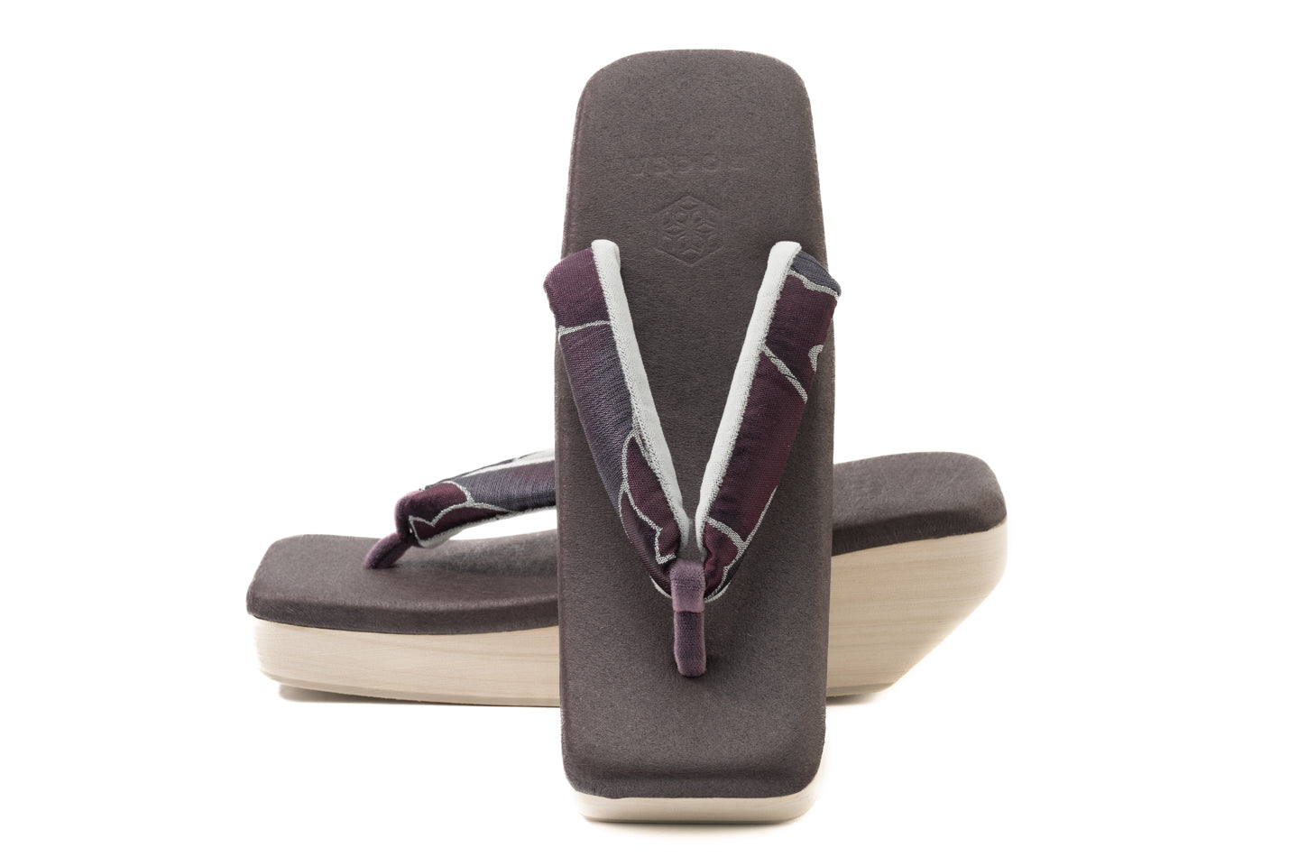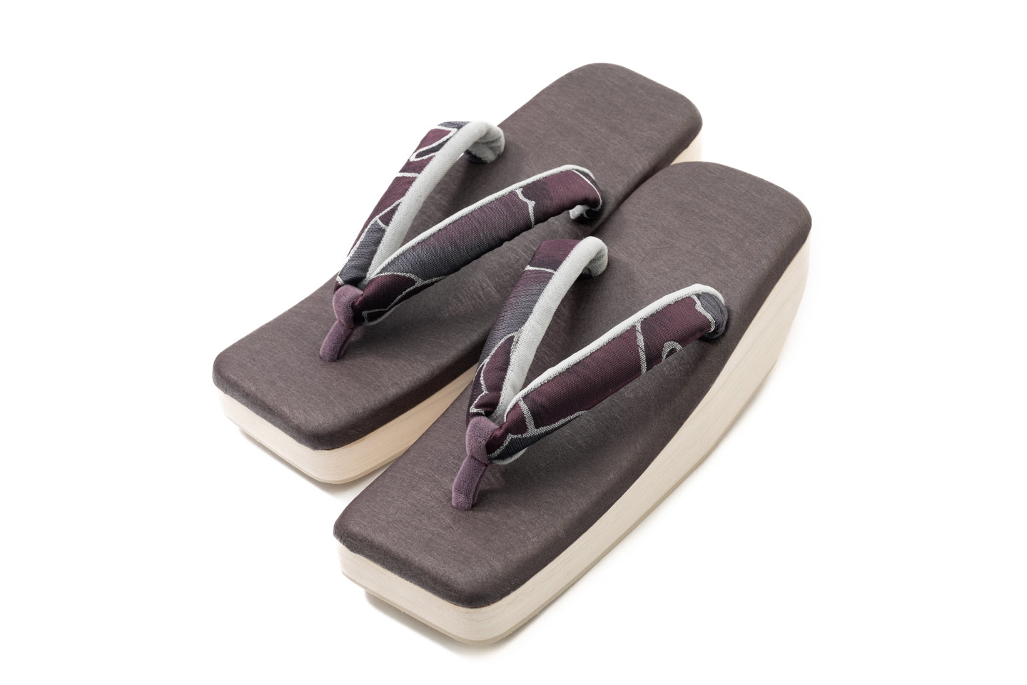 Online限定/挿上げ【オールシーズン 六角ぞうり】麹塵染葡萄色花緒(紹巴織)/コラボRocca草履/フリーサイズ